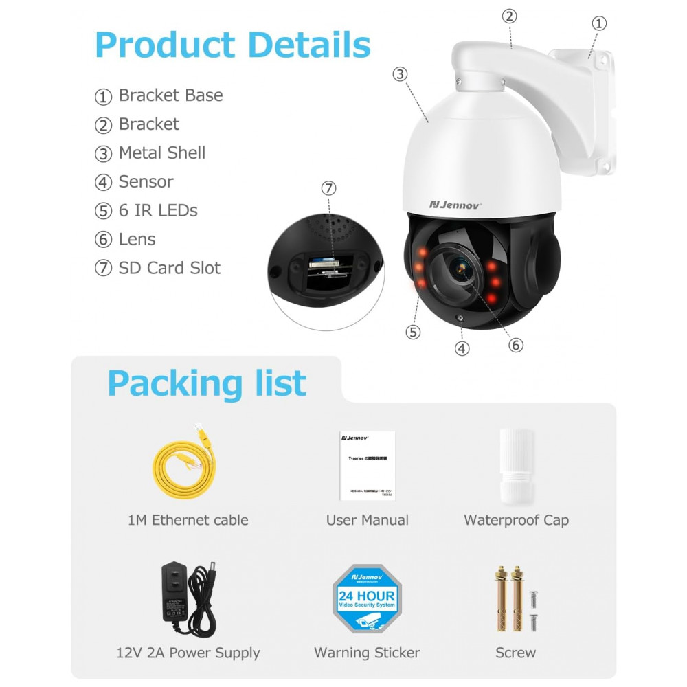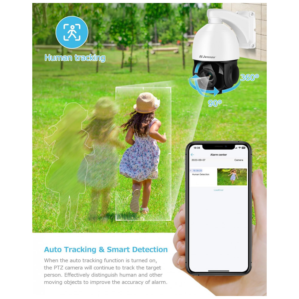Câmera de Segurança Jennov 4K 8MP com 20x de Zoom Motorizado e Detecção de Pessoas