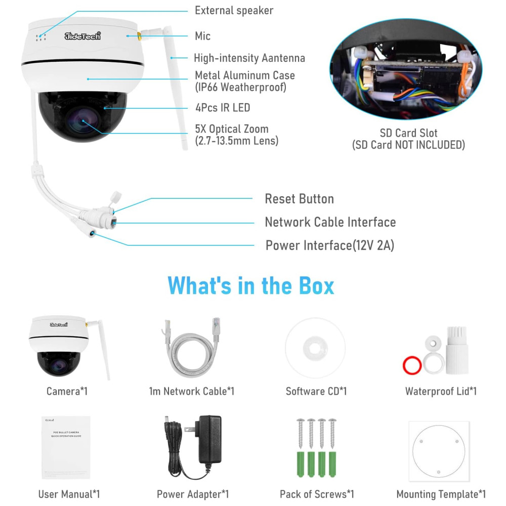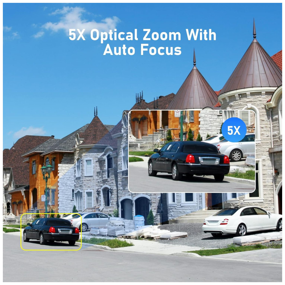 Câmera de Segurança JideTech 5MP com 5x de Zoom Motorizado e a Prova dÁgua IP66