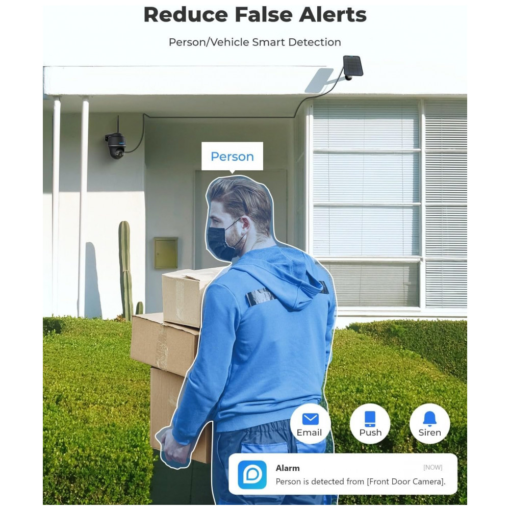 ALIMENTAÇÃO SOLAR 100 SEM FIO A instalação fácil, sem ferramentas complicadas e sem design de cabo, torna a câmera de segurança adequada para uso em qualquer lugar. Vem com uma bateria de alta capacidade que pode fornecer um tempo de trabalho duradouro para a câmera, e usá la com o painel solar Reolink é uma vantagem para evitar o incômodo de carregar manualmente.