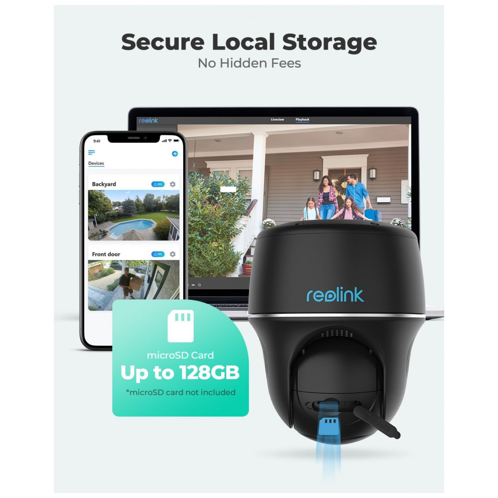 GRAVE SEM TAXA DE ASSINATURA Os vídeos podem ser zenados com segurança localmente em um cartão SD até 128 GB, não incluído. que você pode acessar e reproduzir a qualquer hora e em qualquer lugar via Reolink APP, Client. Nenhuma taxa de assinatura para as funções suportadas