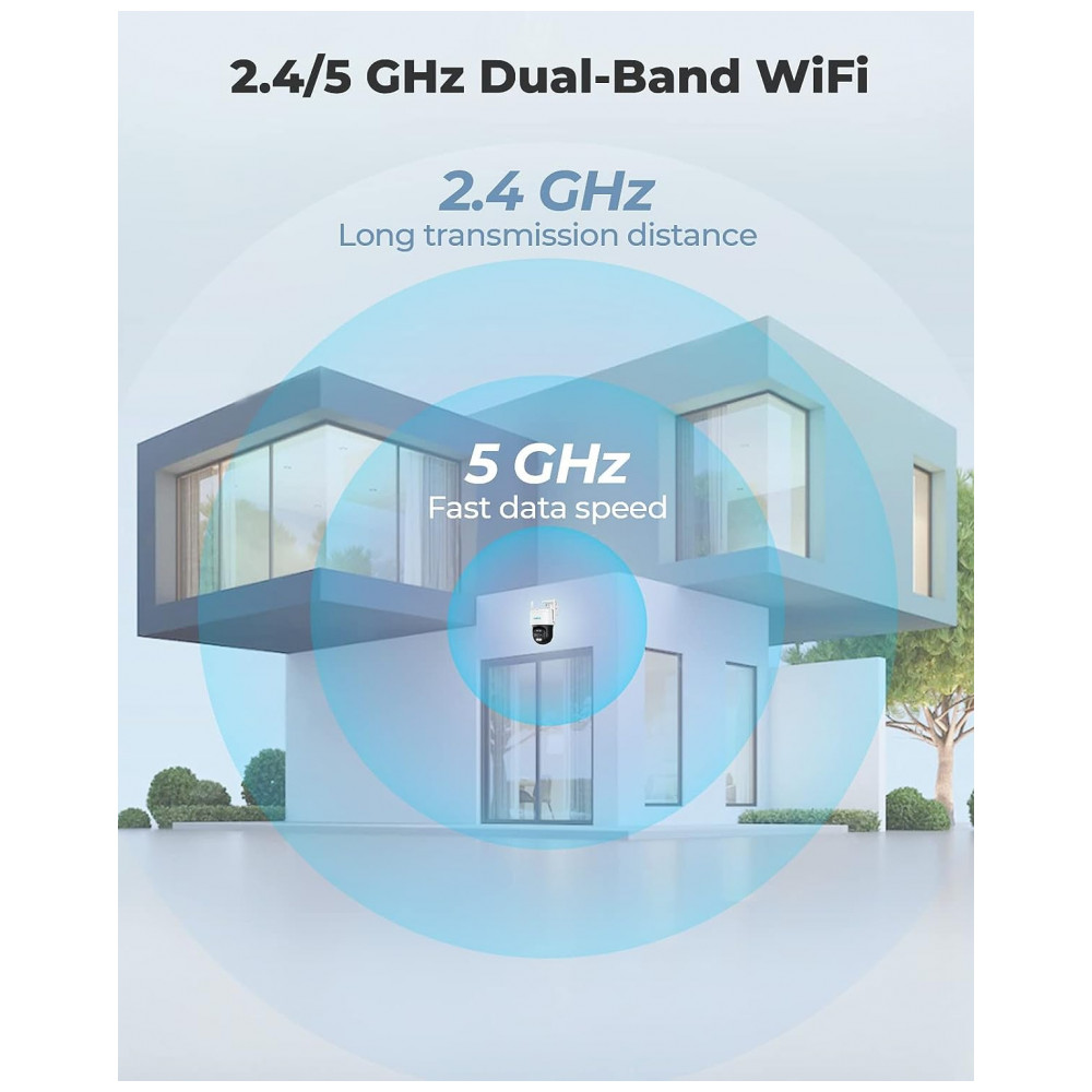 Campo de visão ultra amplo a lente grande angular oferece ângulos de visão de 104 38 na horizontal e 60 21 na vertical. Ele pode fazer uma panorâmica de 355, inclinar 90 e rastrear o objeto a uma distância de 50 pés durante o dia e a noite, para realizar vigilância total