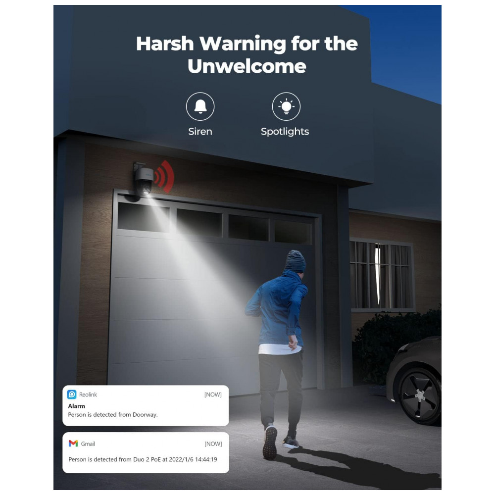 ALERTAS INSTANTÂNEOS Assim que qualquer movimento suspeito for detectado, holofotes e sirenes serão acionados e notificações por push, e mail serão enviadas para o seu dispositivo. Sinta se o tempo todo