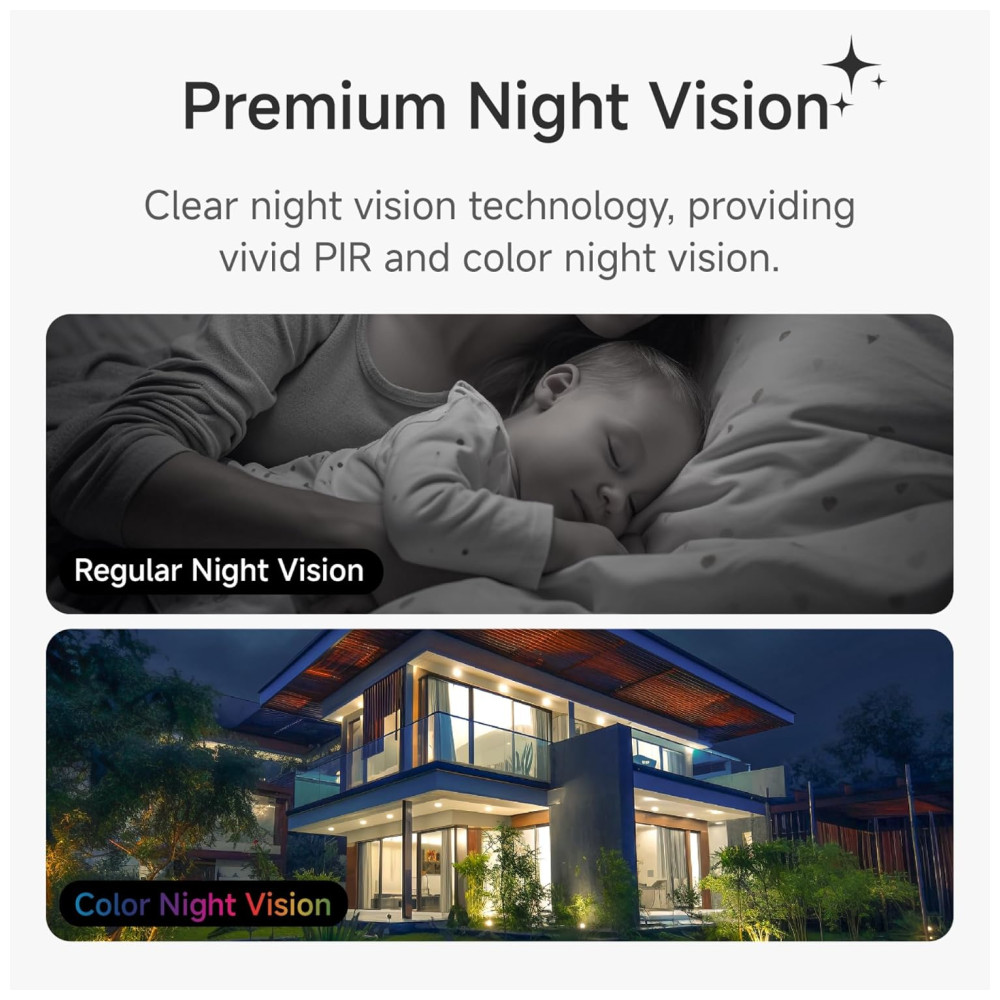 Destaque embutido o holofote ativado por movimento ilumina os arredores quando o movimento é detectado e impede visitantes indesejados. A visão noturna colorida mostra mais detalhes.
