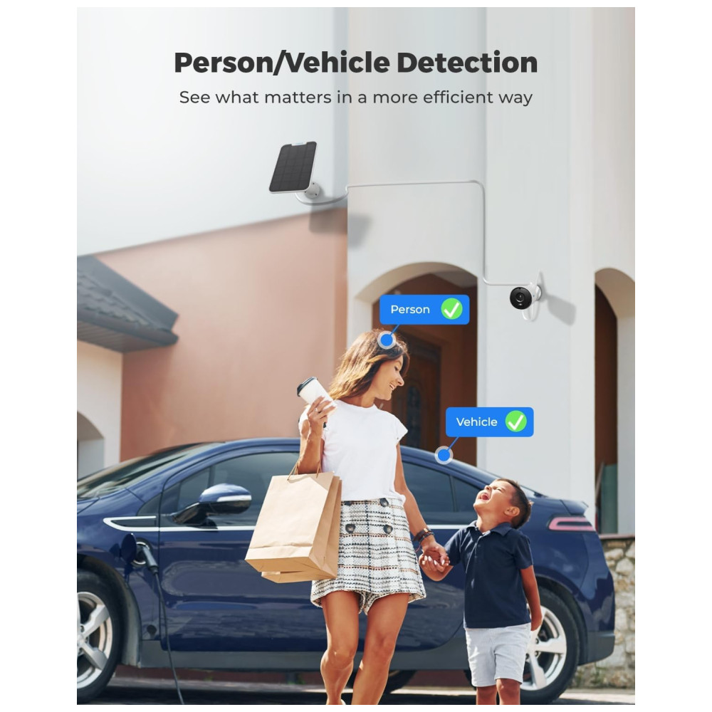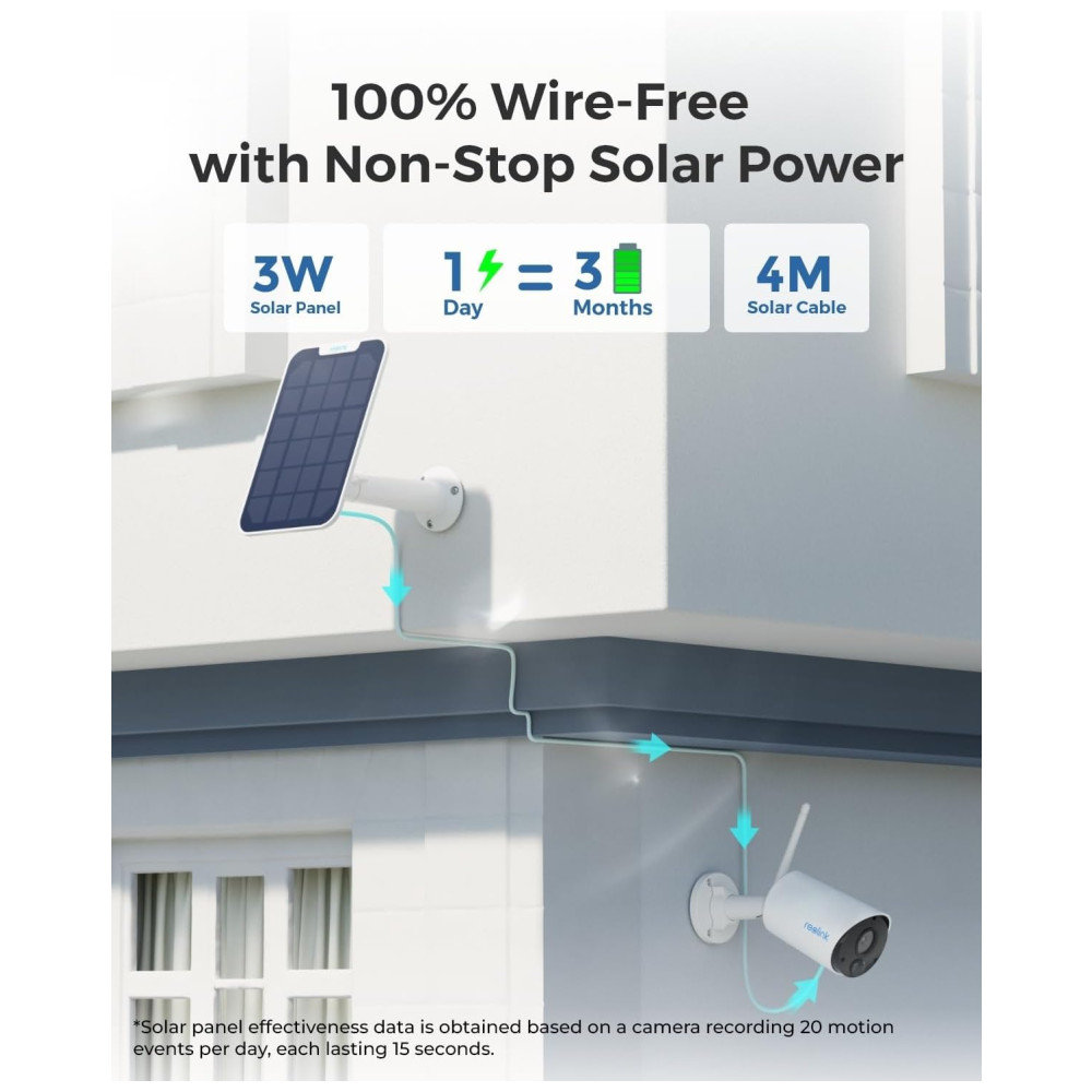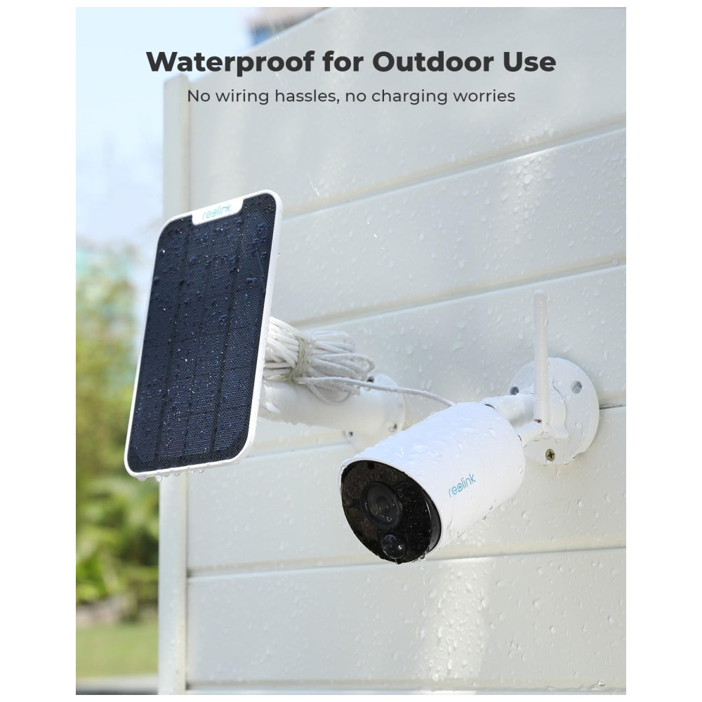 Sistema de câmera de segurança verdadeiramente sem fio Com um painel solar Reolink ecologicamente correto, a câmera com bateria recarregável Argus Eco pode funcionar 365 dias por ano. Conexão wi fi de 2,4 G confiável e energia solar oferecem liberdade sem fio não oferece suporte a Wi Fi de 5 GHz. Fácil de configurar no aplicativo Reolink, seguindo as instruções de voz. Coloque o sistema de segurança movido a energia solar em qualquer lugar que você queira vigilância.