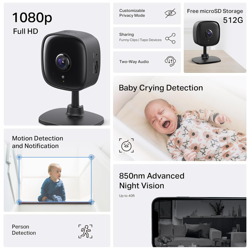 Câmera de Vigilância Interna Tapo by TPLink 1920x1080p para Monitoramento de Bebês e Pets – Visão Noturna Áudio 2 Vias Nuvem