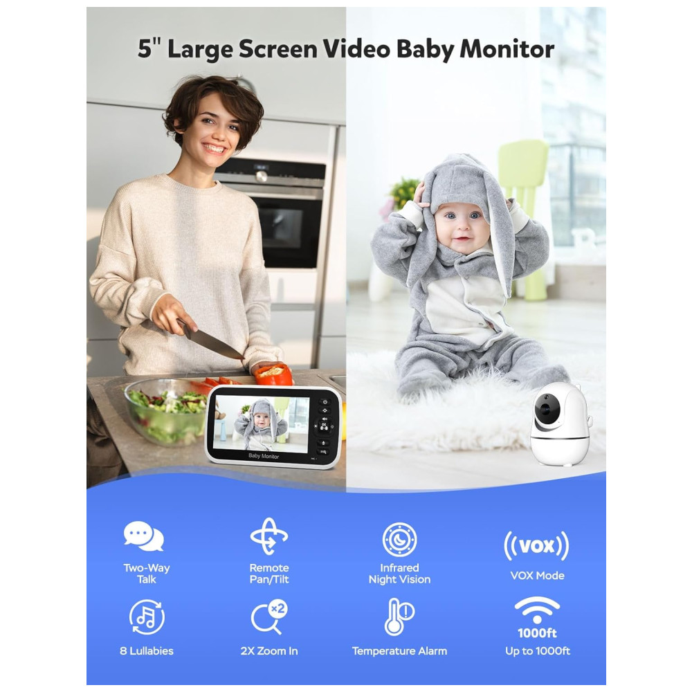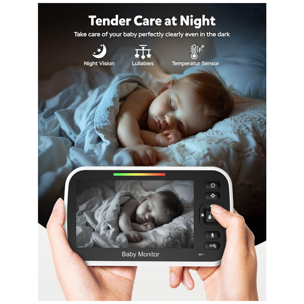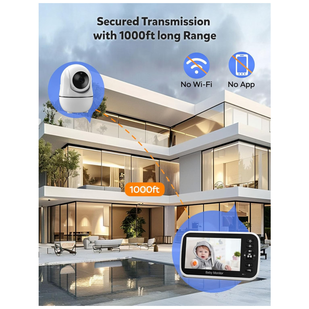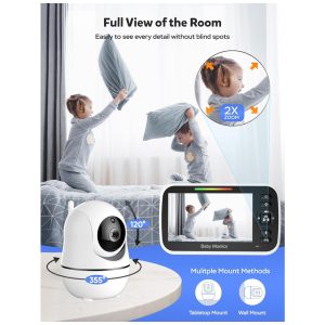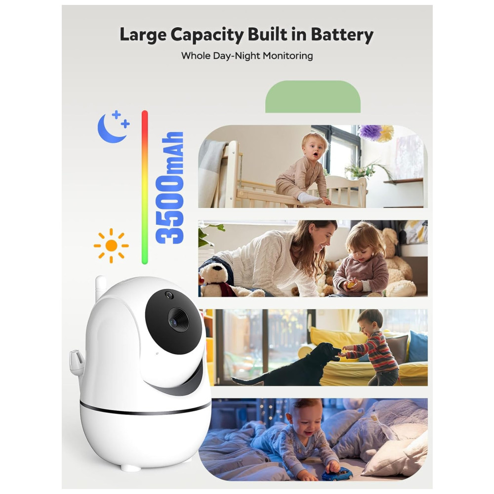 Desfrute de um monitor de bebê de alta qualidade com tela LCD, oferecendo vídeo e áudio cristalinos. A câmera possibilita rotação de 355 graus, inclinação de 120 graus e zoom de 2X até 304 metros, garantindo visibilidade total de todos os ângulos e tranquilizando os pais. Com uma bateria recarregável de 3500mAh, tenha até 30 horas de vida útil da bateria no modo VOX (Voz Ativada) e 10 horas com a tela ligada. O monitor ativa a tela automaticamente ao detectar sons do bebê, economizando energia enquanto o mantém informado. Comunique-se remotamente com seu bebê usando a função de áudio bidirecional. O monitor possui também 8 canções de ninar para ajudar a acalmar seu bebê, reduzindo o estresse e fortalecendo o vínculo. Com visão noturna infravermelha, este monitor permite que você veja claramente seu bebê durante o dia ou a noite. O sensor de temperatura fornece alertas se o ambiente estiver muito quente ou muito frio, garantindo um ambiente confortável para seu bebê. Conexão segura sem WiFi com tecnologia FHSS em um canal seguro de 2,4GHz, garantindo privacidade e segurança sem depender de WiFi ou aplicativos. Transmita vídeo e áudio ao vivo com segurança, sem o risco de hacking ou violações de privacidade.