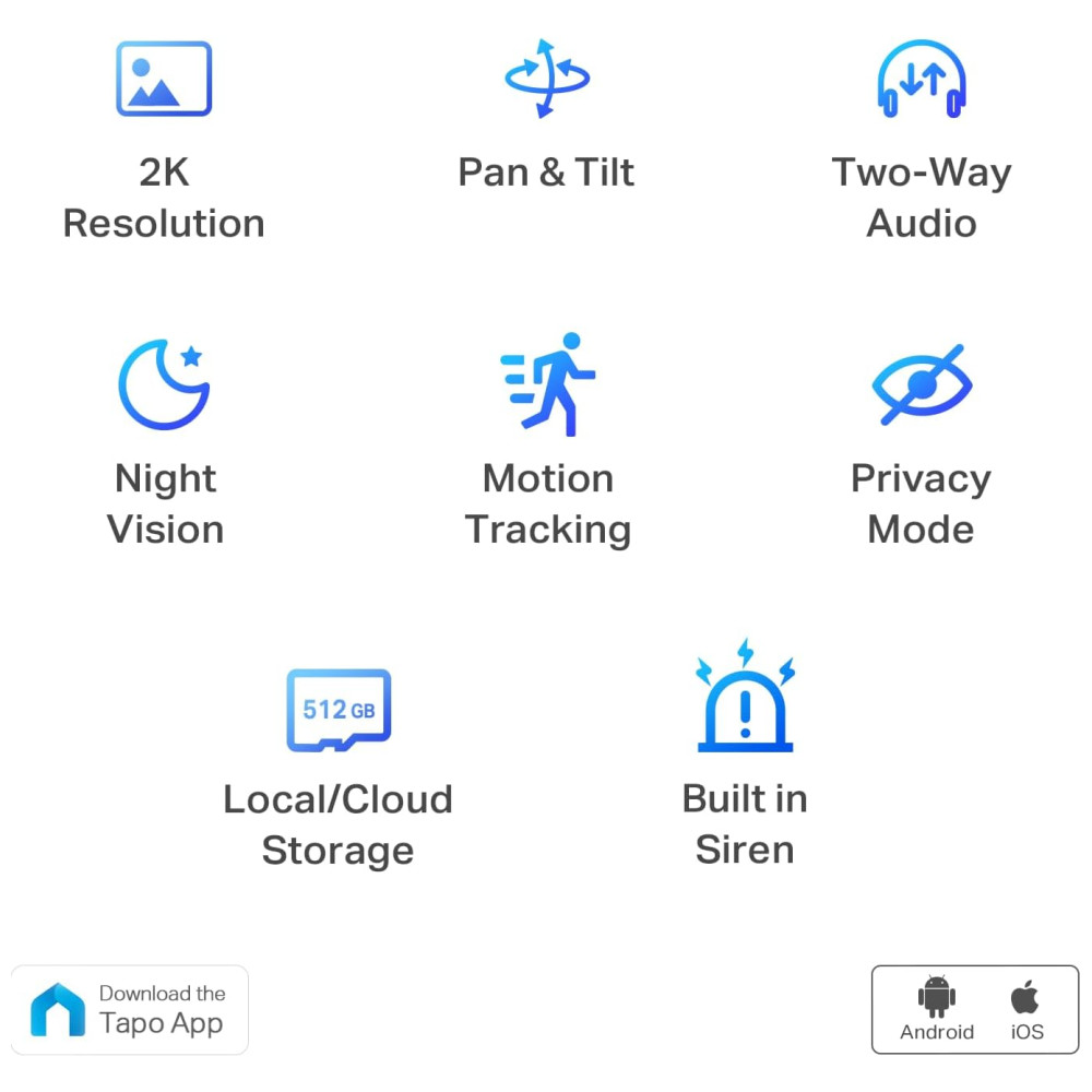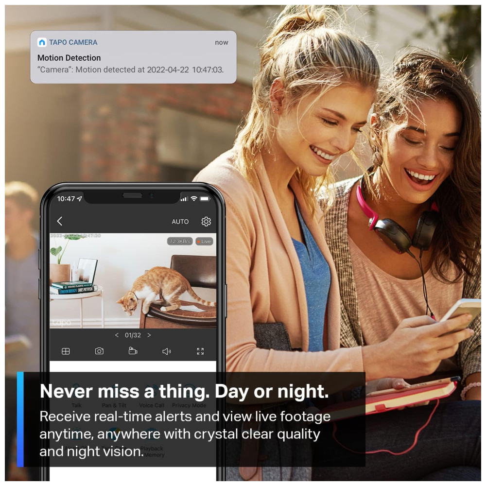 Com vídeo cristalino em 2K HD, a Câmera de Segurança Residencial WiFi Tapo C210 oferece a capacidade de manter sempre um olho em sua família, animais de estimação e proteger sua casa. Com detecção de pessoa e movimento, receba instantaneamente notificações relevantes quando houver atividade acontecendo. Utilizada também como monitor de bebês, a Tapo C210 oferece detecção gratuita de choro de bebê. Verifique o que está acontecendo dentro de sua casa, mesmo à noite, com a visão noturna graças ao sensor IR integrado. Com compartilhamento de dispositivo, você e um membro da família podem monitorar o feed, tornando a vigilância dos pequenos um pouco mais fácil. Salve continuamente as imagens em um cartão microSD de até 512 GB (não incluído).Com áudio bidirecional nítido, você nunca estará verdadeiramente longe novamente, com a capacidade de ter conversas claras com quem estiver presente. Além disso, mantenha sua família segura de intrusos indesejados acionando a sirene embutida e o alarme luminoso.