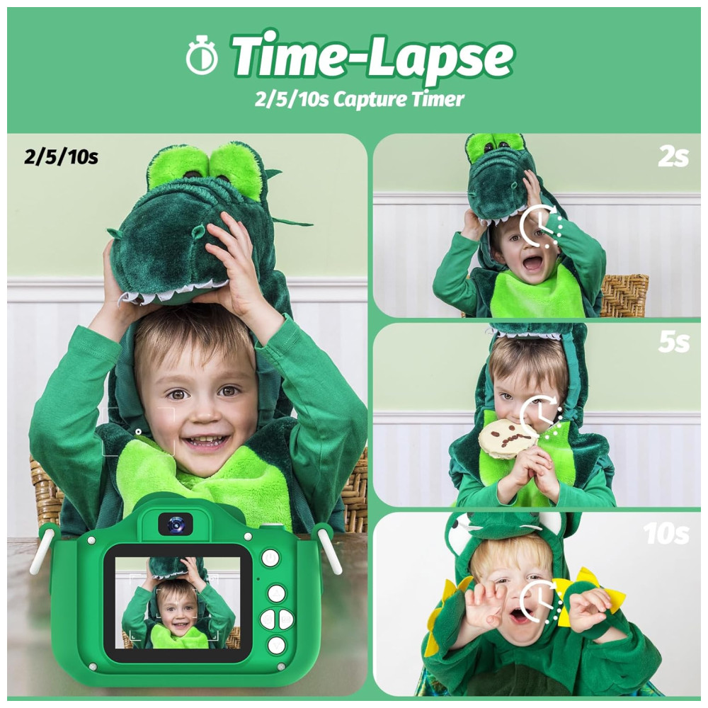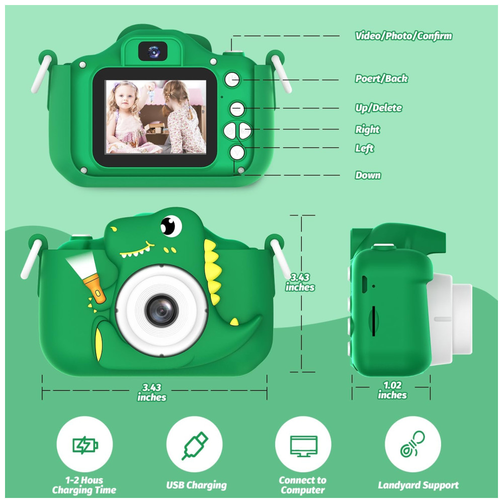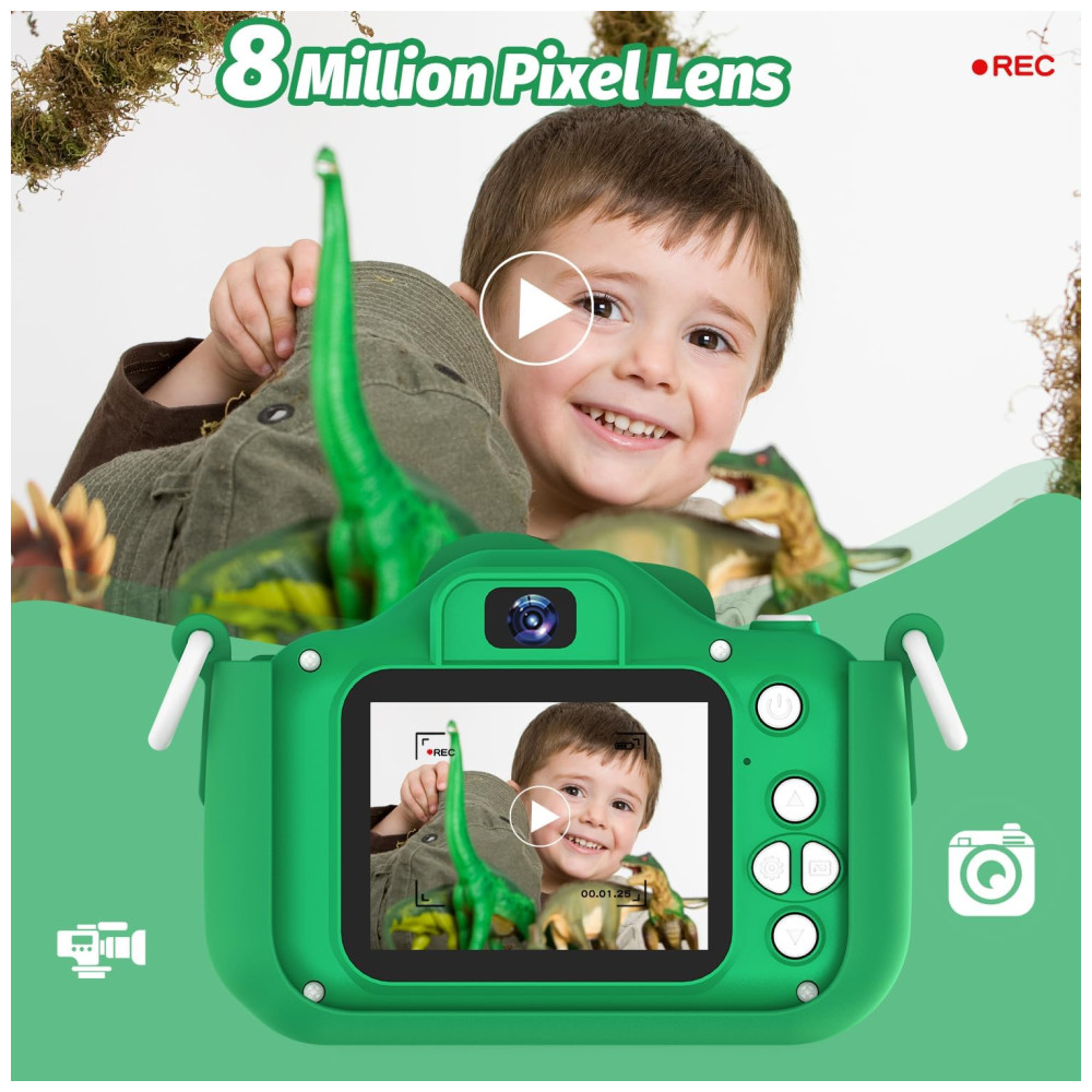 Câmera infantil dinossauro para meninos de 3 a 12 anos 12MP vídeo HD 1080p bateria recarregável cartão SD 32GB cordão portátil e jogos.OUTUVAS.