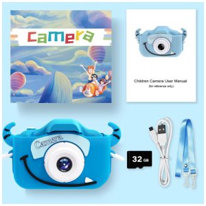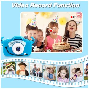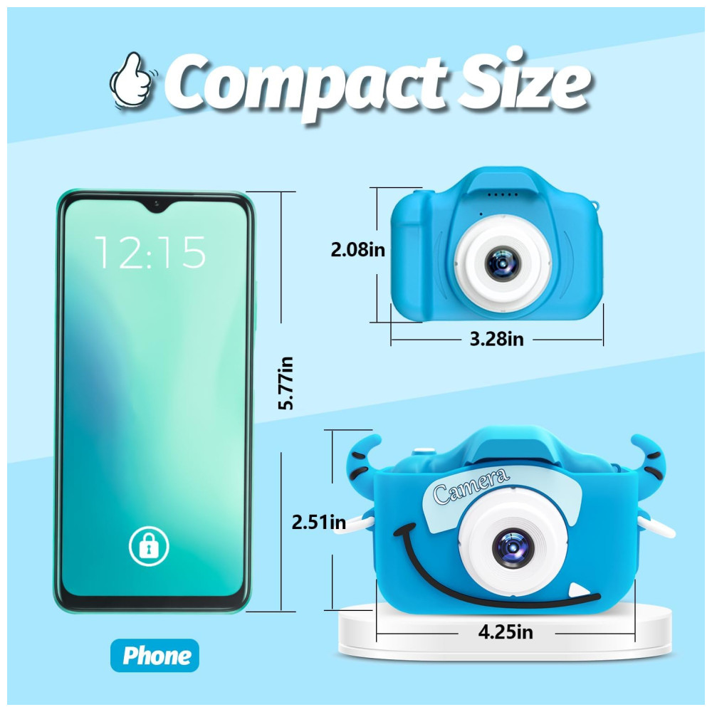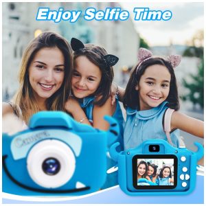 Câmera infantil Goopow ideal para presente de Natal e aniversário para crianças de 3 a 8 anos. Feita com material ecológico e não tóxico, possui tela LCD de 5 cm, perfeita para vídeos e fotos. Suporta modo selfie e grava vídeos em HD 1080p com zoom digital 8x e lapso de tempo para capturar momentos especiais.