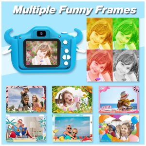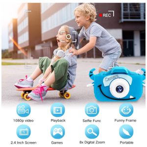 Câmera infantil Goopow para crianças de 3 a 8 anos com vídeo HD 1080p 12 MP zoom digital 8x 28 molduras divertidas 3 jogos.