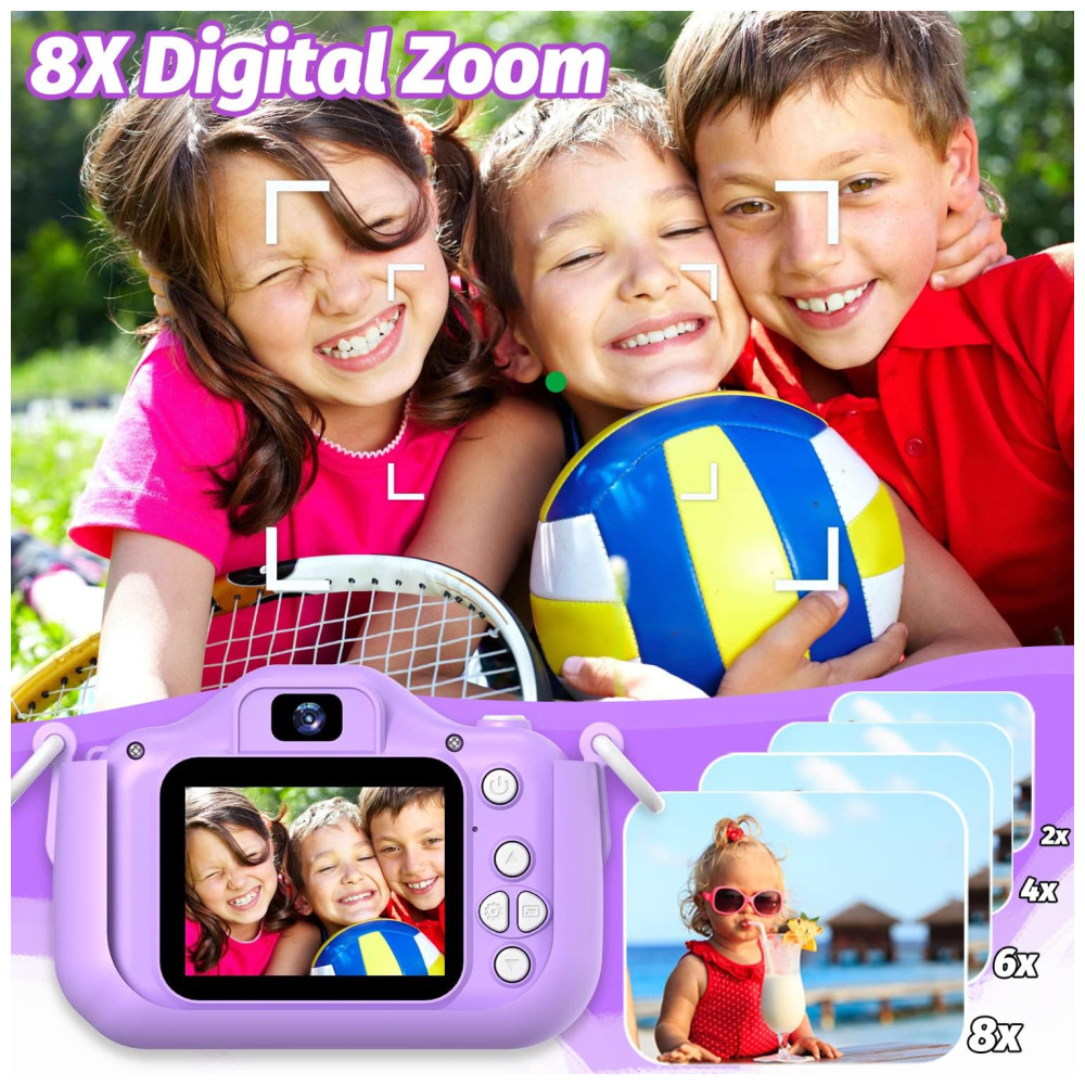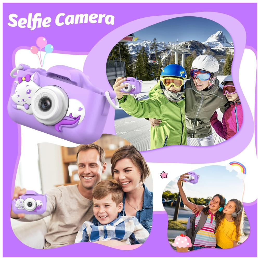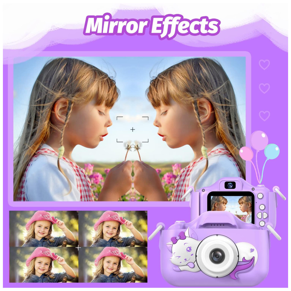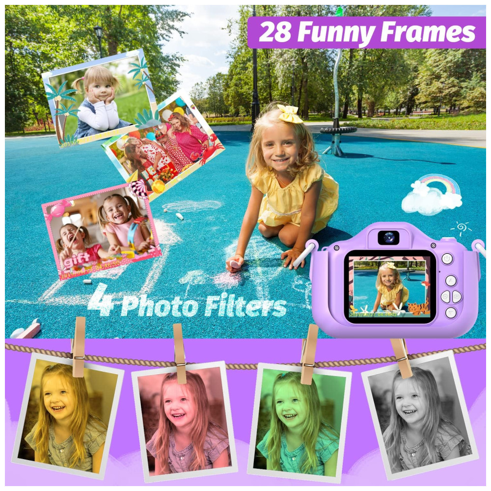 Câmera Multifuncional Divertida – Câmera com 8,0 MP e vídeo 1080p, 27 molduras engraçadas, 4 filtros mágicos, disparo contínuo, 3 tipos de lapso de tempo e zoom digital 4x. Ideal para crianças de 3 a 7 anos explorarem cenas criativas e desenvolverem habilidades fotográficas.