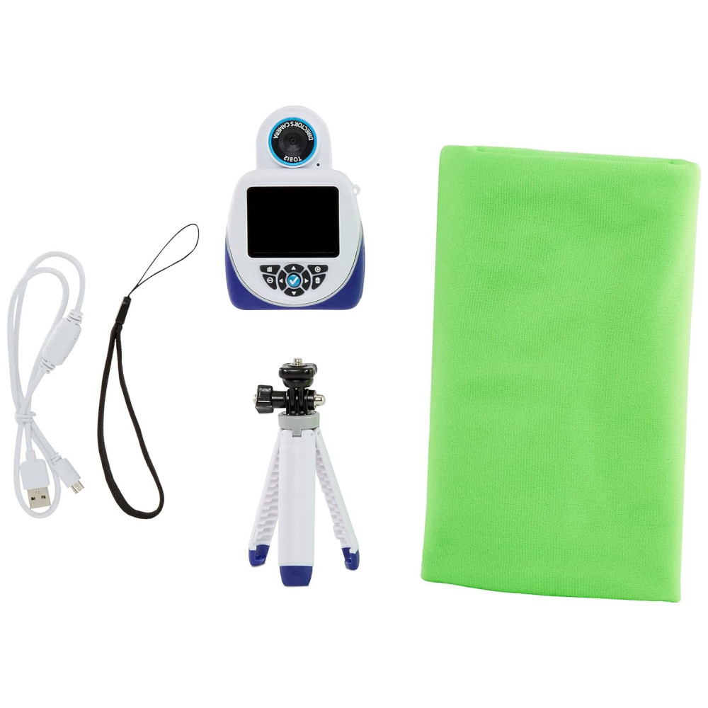FÁCIL DE USAR Apresenta um grande display de 2,4, um slot microSD para memória expandida e bateria recarregável com cabo USB para fácil carregamento e download. Inclui um tripé, bastão de selfie, tecido de tela verde e uma alça de pulso.