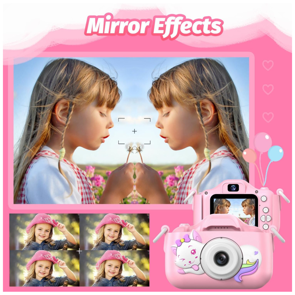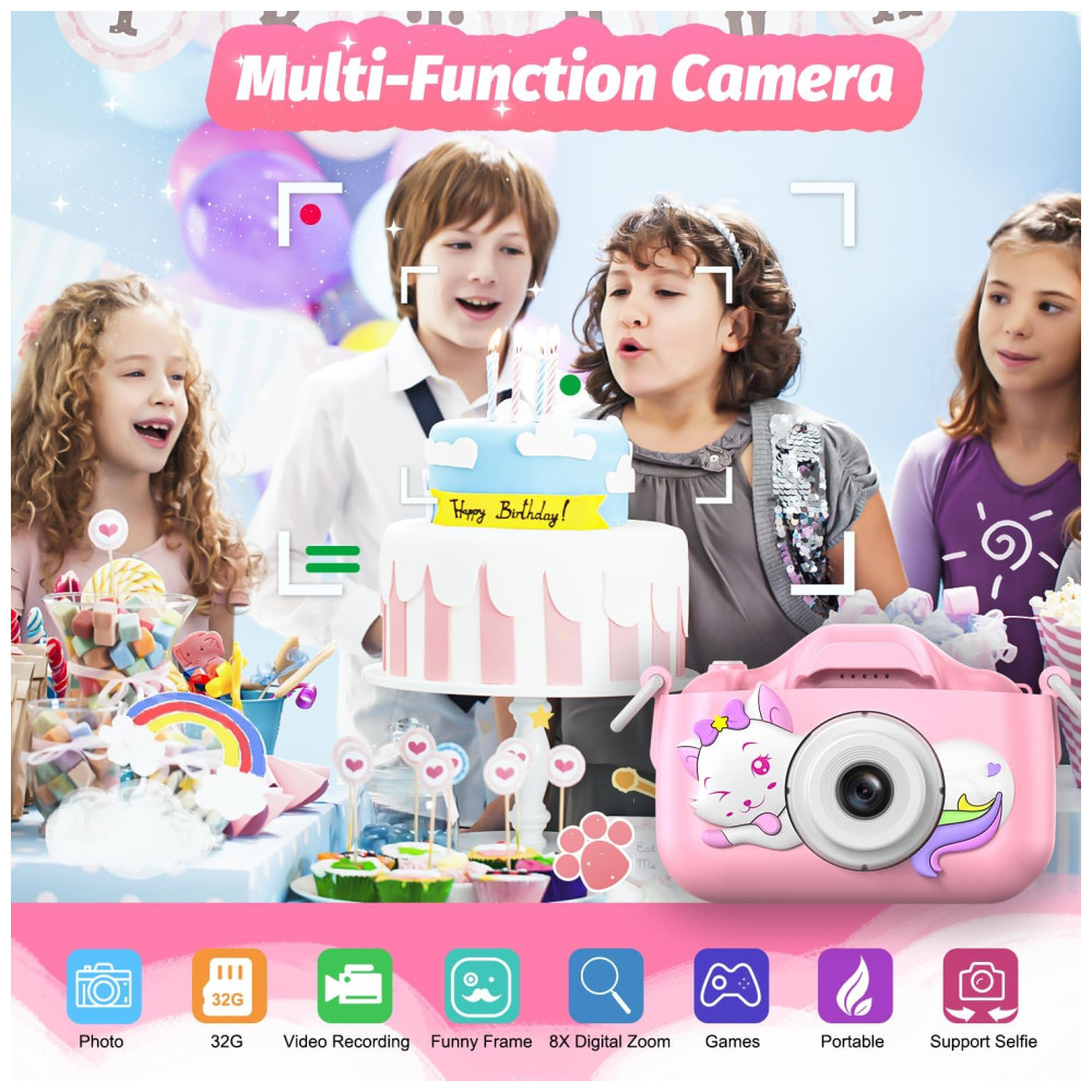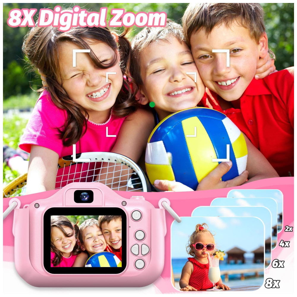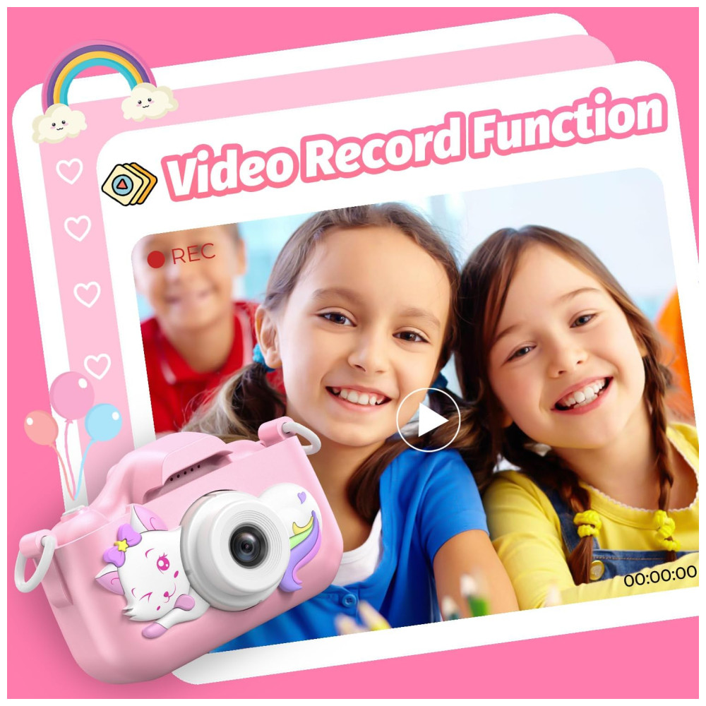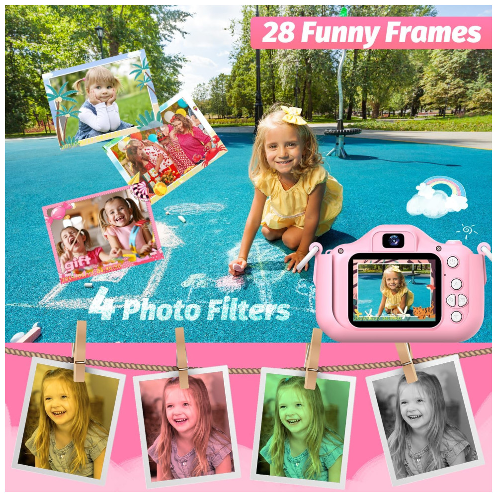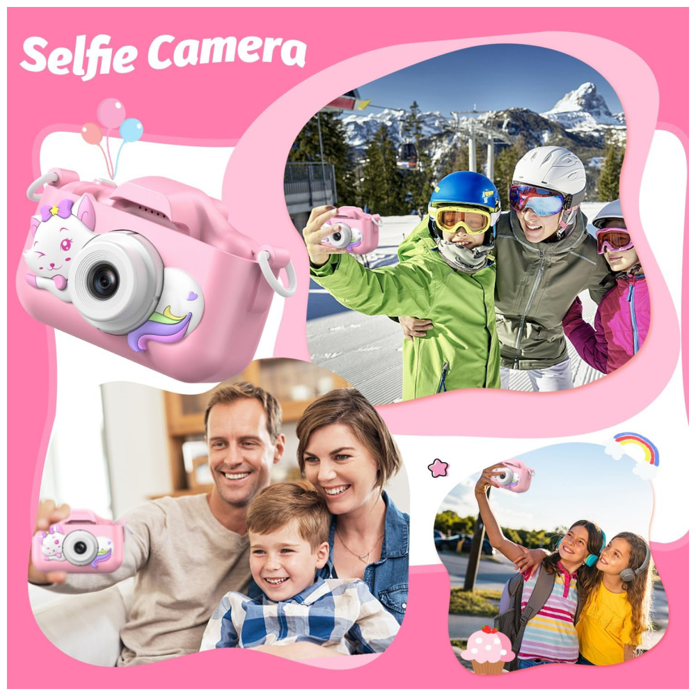Câmera Selfie Infantil Goopow Para Meninas/Meninos 3-9 Anos Digital com Capa Protetora e Cartão SD 32GB (DC-H21-PINK).