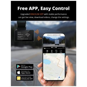 Grave vídeos UHD na frente e na traseira do seu carro A câmera dual dash Kingslim D4 4K pode gravar vídeos simultaneamente em 4K frontal 2160p 25fps e resolução 1080P traseira, capturando claramente placas e sinais de trânsito. Você pode alternar para a visualização frontal em QHD 2.5K 2560×1440 30fps e a visualização traseira em full HD 1080P 1920×1080 25fps para gravação de vídeo diária, captura de detalhes QHD para ajudar a restaurar a verdade
