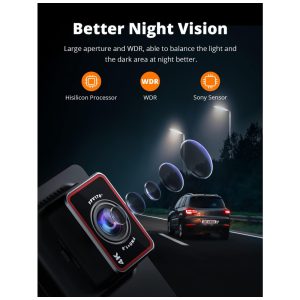 Melhor visão noturna com sensor Sony A câmera king dash dual adota o sensor Sony IMX335 STARVIS líder da indústria e o processador Hisilicon Hi3559. Com super visão noturna, abertura f , 1.8 e tecnologia WDR, você pode gravar detalhes impressionantes mesmo em ambientes com pouca luz. Com ângulos de visão super amplos frontais de 170 e traseiros de 150 e lentes de vidro de 6 camadas de foco fixo, oferece cobertura máxima da estrada e melhora muito a visão noturna, fornecendo imagens e vídeos nítidos e claros