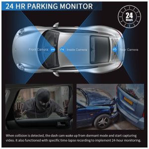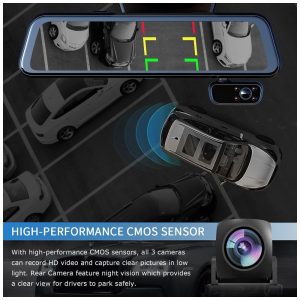 SENSOR CMOS DE ALTO DESEMPENHO Com sensores CMOS de alto desempenho, todas as 3 câmeras podem gravar vídeo HD em 1080P e capturar imagens nítidas com pouca luz. A câmera traseira possui visão noturna que fornece uma visão clara para os motoristas estacionarem com segurança.