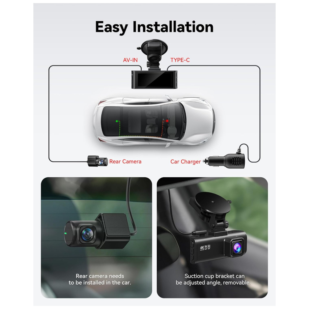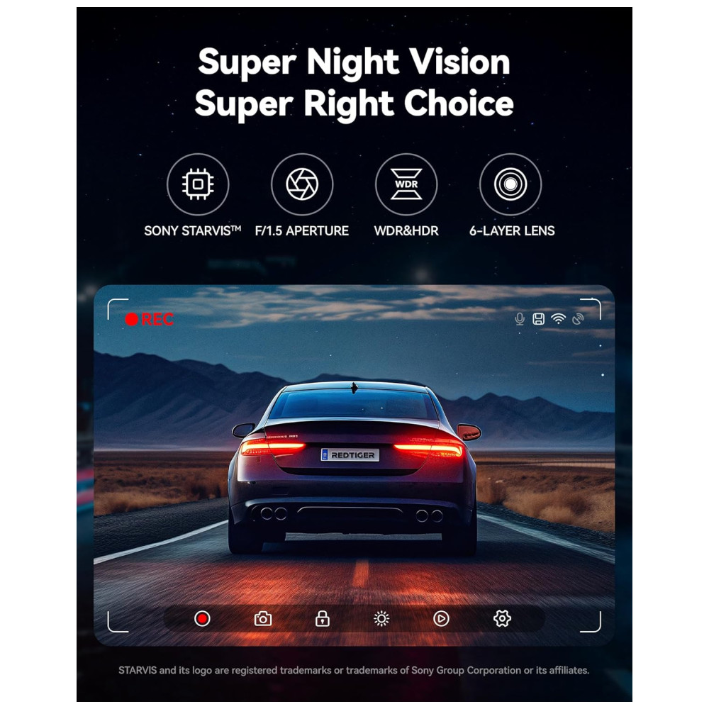 Câmera Real Ultra HD 4K 1080P Dual Dash A câmera REDTIGER F7N oferece 4K 3840 2160P de alta qualidade com sensor Sony IMX415 na câmera frontal e 1920 1080P na câmera traseira que captura uma visão super nítida. Ajuda a ler a maioria dos detalhes da rua sinais, placa de licença etc. câmera dupla de ângulo amplo capturam todos os pedestres e veículos ao redor do carro, fornecendo evidências suficientes para colisões traseiras ou colisões etc.