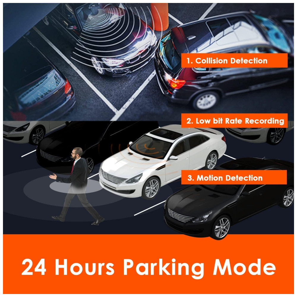 Monitoramento de estacionamento 24 horas Com o kit de cabeamento, a câmera do painel muda automaticamente 5 minutos para o modo de estacionamento depois de estacionar o carro. No modo de detecção de economia de energia, uma câmera não poderá permitir o movimento de bloqueio interno ou o modo de detecção de movimento de espera não poderá ser feito internamente para gravar uma vez uma câmera. Com detecção de impacto, se um impacto foi detectado por uma câmera do painel do carro desligado, ela ligará automaticamente para registrar o painel.