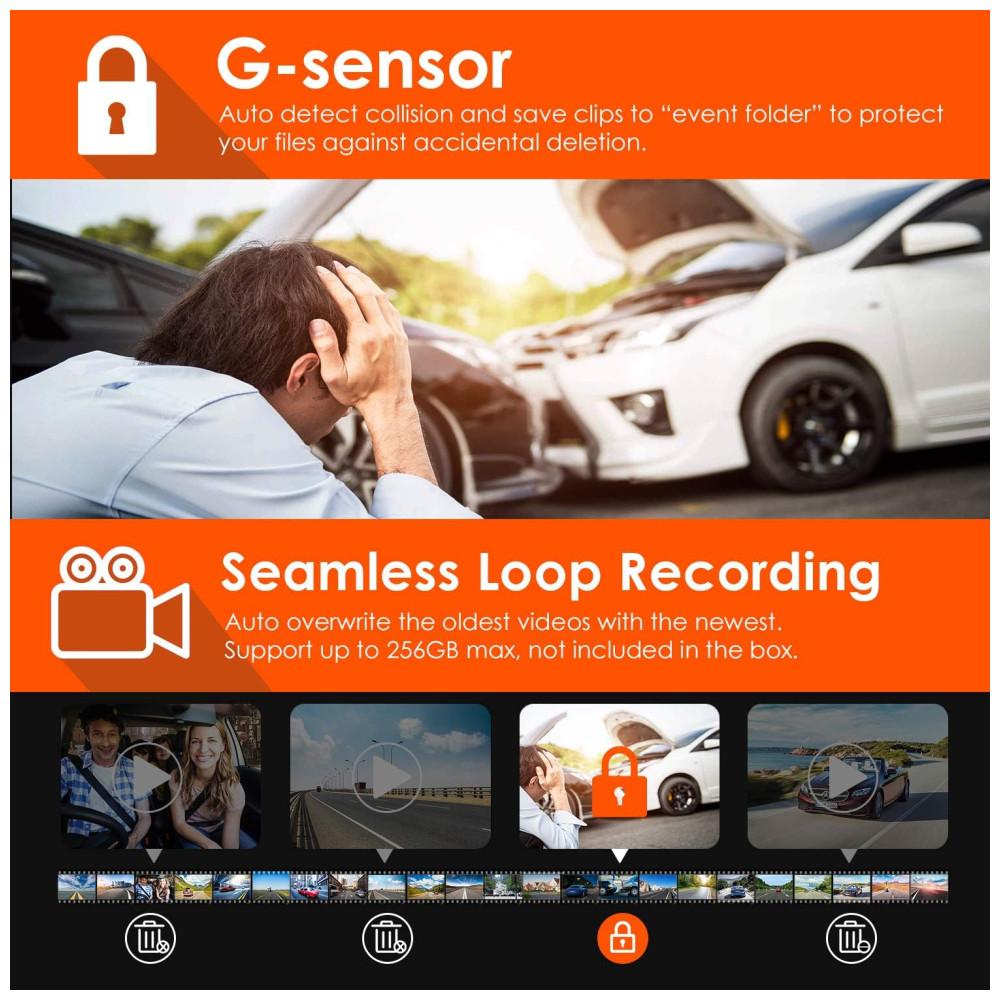 Testemunha para evitar acidentes após acidentes Vídeo de bloqueio de emergência do sensor G de sensibilidade para massa de macarrão cheio de impacto, ou arquivo de gravação de firmware quando ou para LCD desligado automaticamente por distrações, capaz de escrever ou cartão de 256 GB, GPS para recursos externos e para busca, localização e transporte