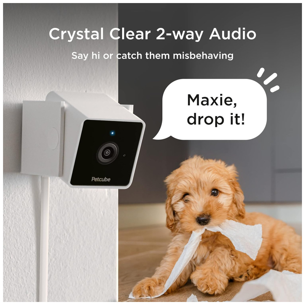 Comunicação bidirecional suave Fale com seus animais de estimação e ouça os latir ou miar de volta. Diga a eles que você os ama ou diga lhes para parar se você os pegar fazendo alguma travessura. Funciona com Alexa.