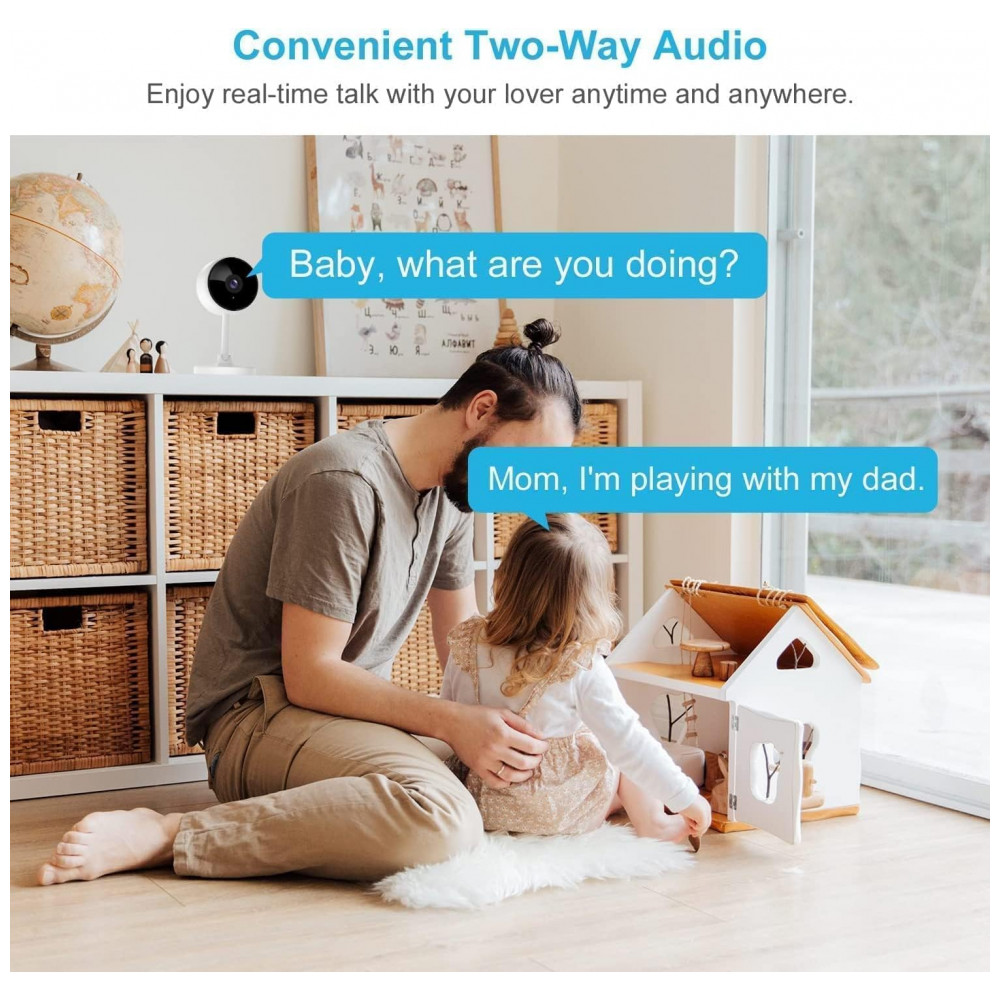 Áudio de 2 vias e Alexa , Assistente do Google Compatível com Comunique se com sua família, filhos, animais de estimação a qualquer hora, em qualquer lugar com o microfone e o alto falante embutidos da câmera wifi Litokam. Veja feeds ao vivo da sua câmera de segurança em dispositivos Alexa ou Google Assistant com comandos de voz simples Funciona apenas com WiFi de 2,4 GHz .
