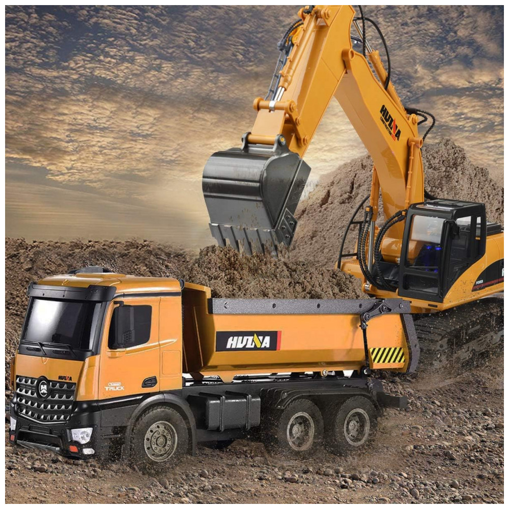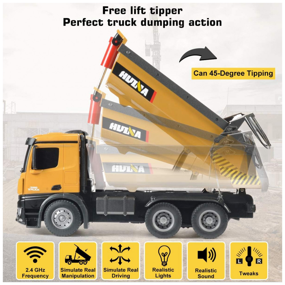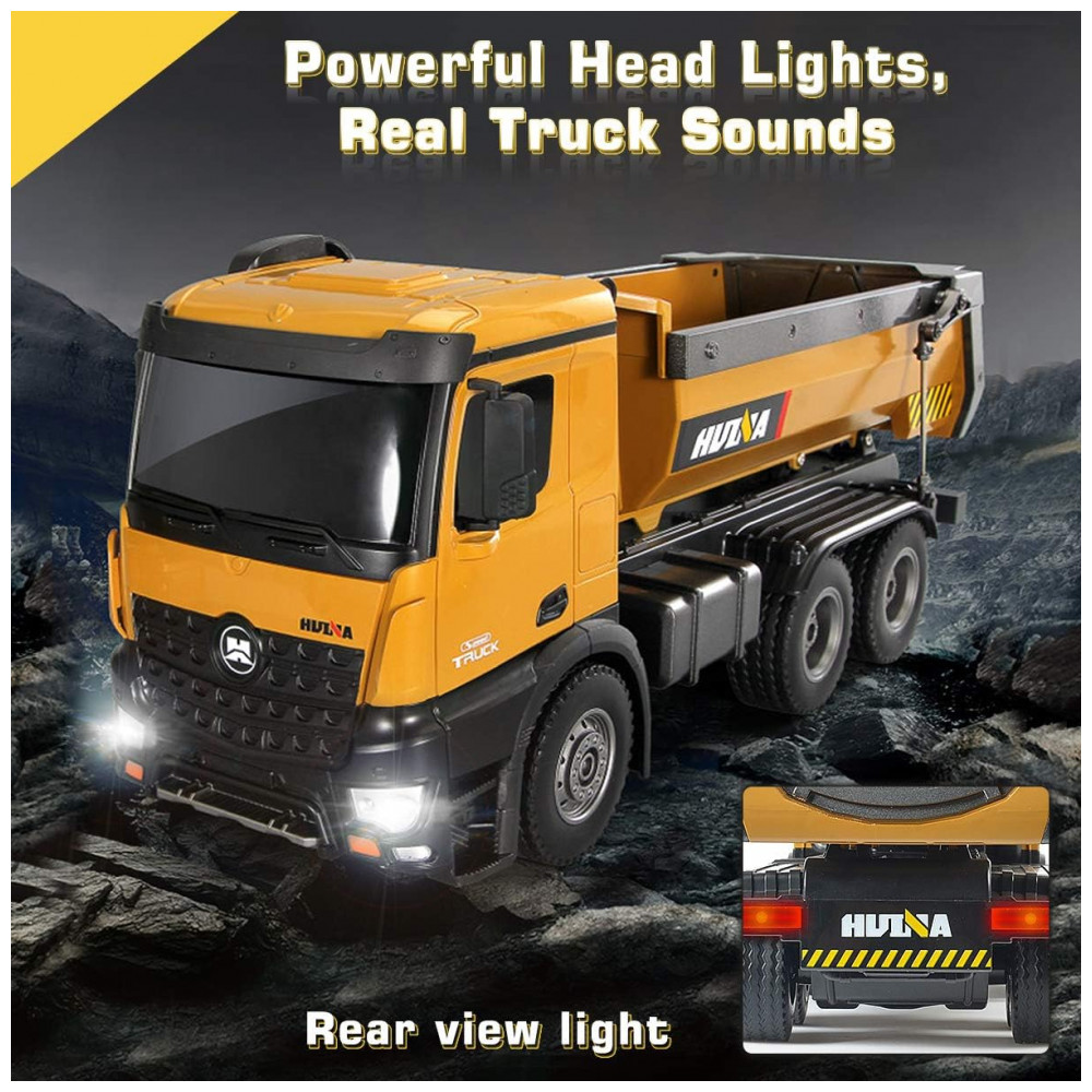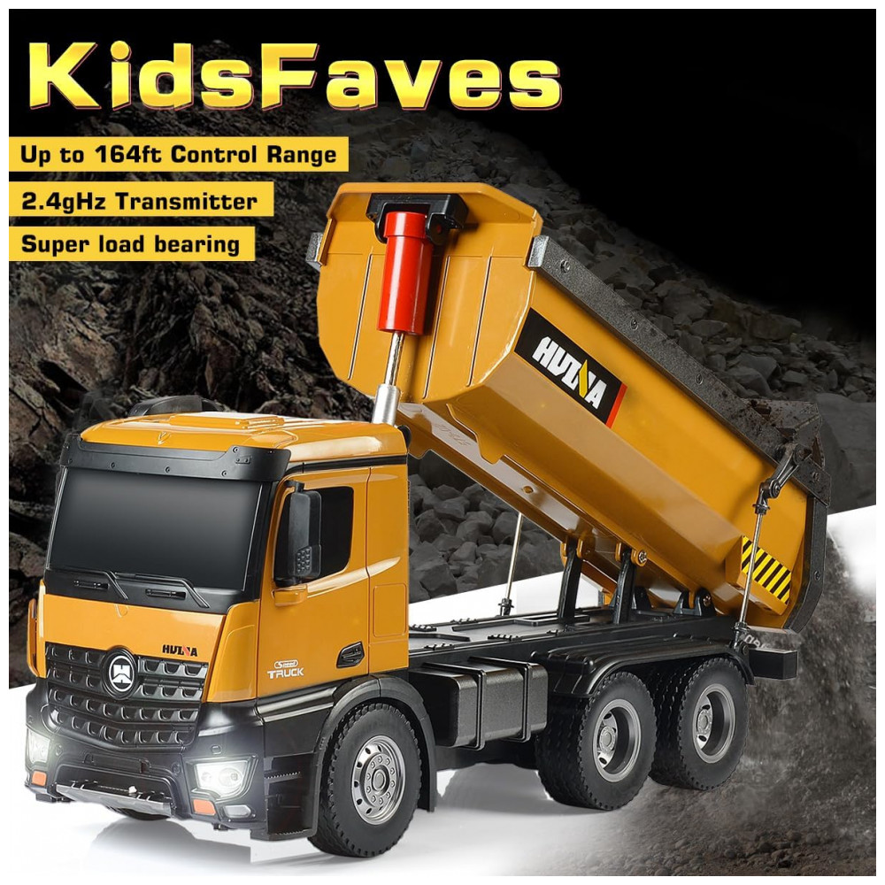 Caminhão Basculante de Controle Remoto em Escala 1:14 – Veículo de Construção Metálico Resistente com Capacidade para 7 Kg – KidsFaves