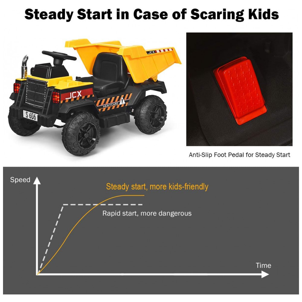 Presente perfeito para meninos e meninas: Este passeio em caminhão basculante simulou a aparência real do veículo de construção e é adequado para meninos ou meninas de 37 a 96 meses que são fascinados por construção. E as crianças podem dirigir alegremente no quintal para transportar a carga, brinquedos e assim por diante