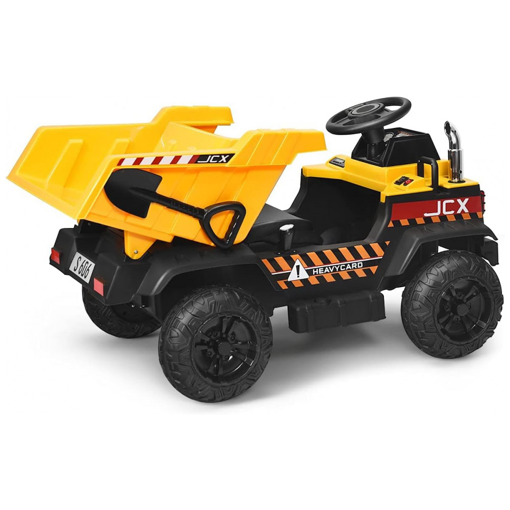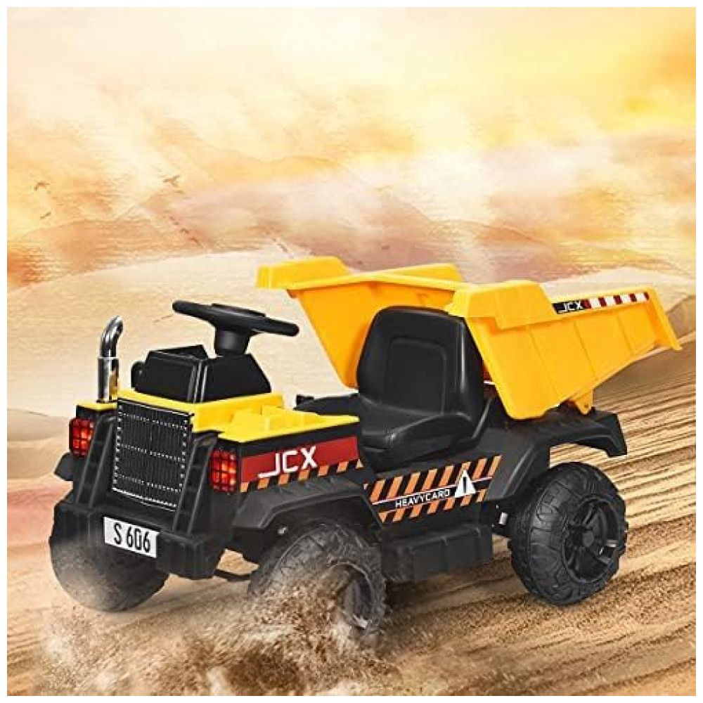 Cama basculante automática para cima e para baixo: Este brinquedo elétrico de veículo de construção apresenta a cama basculante traseira que sobe e desce automaticamente pressionando um botão. As crianças podem controlar o carro para transportar areia e carga no quintal. Eles não apenas terão horas de diversão, mas também rão o processo de aprendizado. Ajuda a melhorar a coordenação mão olho, capacidade cognitiva e habilidades motoras.