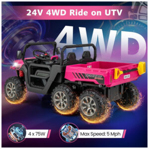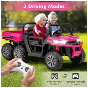 Caminhão Basculante Elétrico Infantil OLAKIDS Rosa 24V 2 Lugares 4WD 6×6 Caçamba Elétrica Suspensão Controle Remoto 4x90W