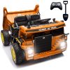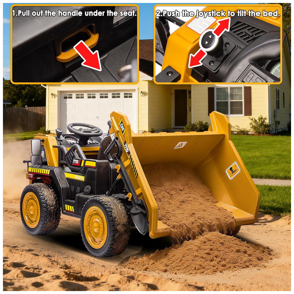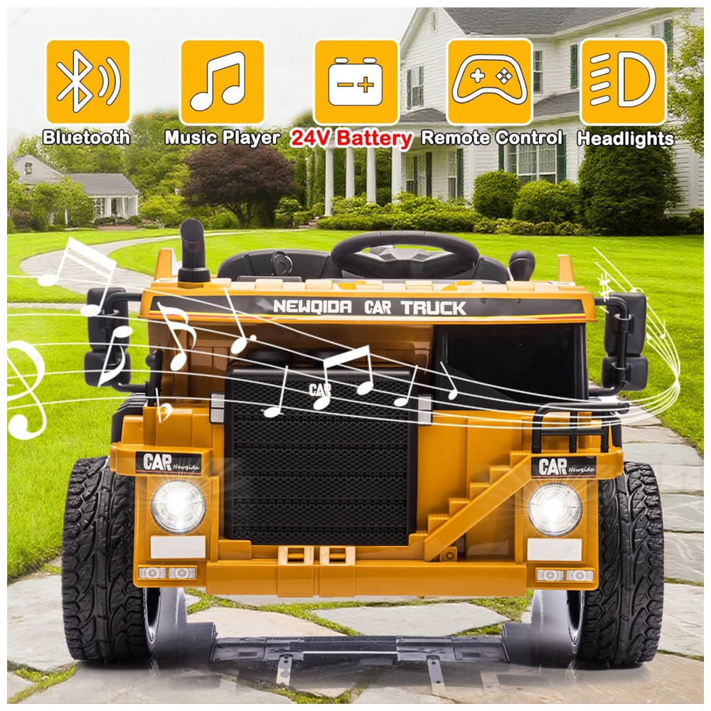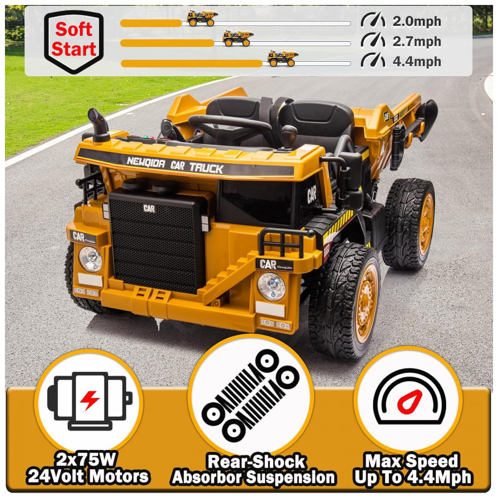 Caminhão Basculante Infantil Elétrico NEWQIDA Amarelo 24V 2 Motores Pá Remota Caçamba Elétrica Bluetooth LED Bancos 19″