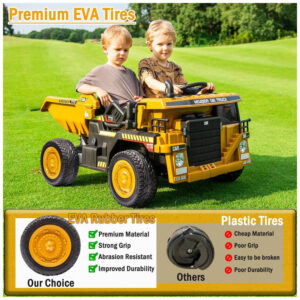 O caminhão basculante elétrico infantil NEWQIDA entrega potência e versatilidade com bateria 24V 7Ah, dois motores de 75W e caçamba elétrica basculante operada por joystick, tornando escavação e transporte de brinquedos ainda mais divertida. O veículo oferece dois modos de condução (manual e controle remoto dos pais), partida suave, velocidade ajustável e pneus para todos os tipos de terreno.