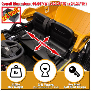 Caminhão Basculante Infantil Elétrico NEWQIDA Amarelo 24V 2 Motores Pá Remota Caçamba Elétrica Bluetooth LED Bancos 19″
