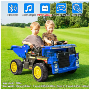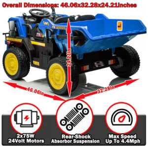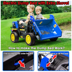 Caminhão Basculante Infantil Elétrico NEWQIDA Azul 24V 2 Motores Pá Remota Caçamba Elétrica Bluetooth LED Bancos 19″