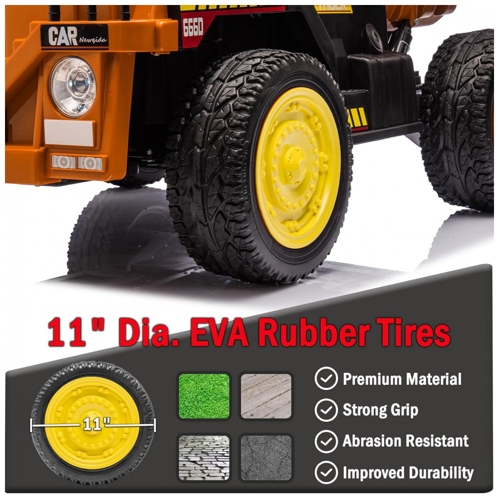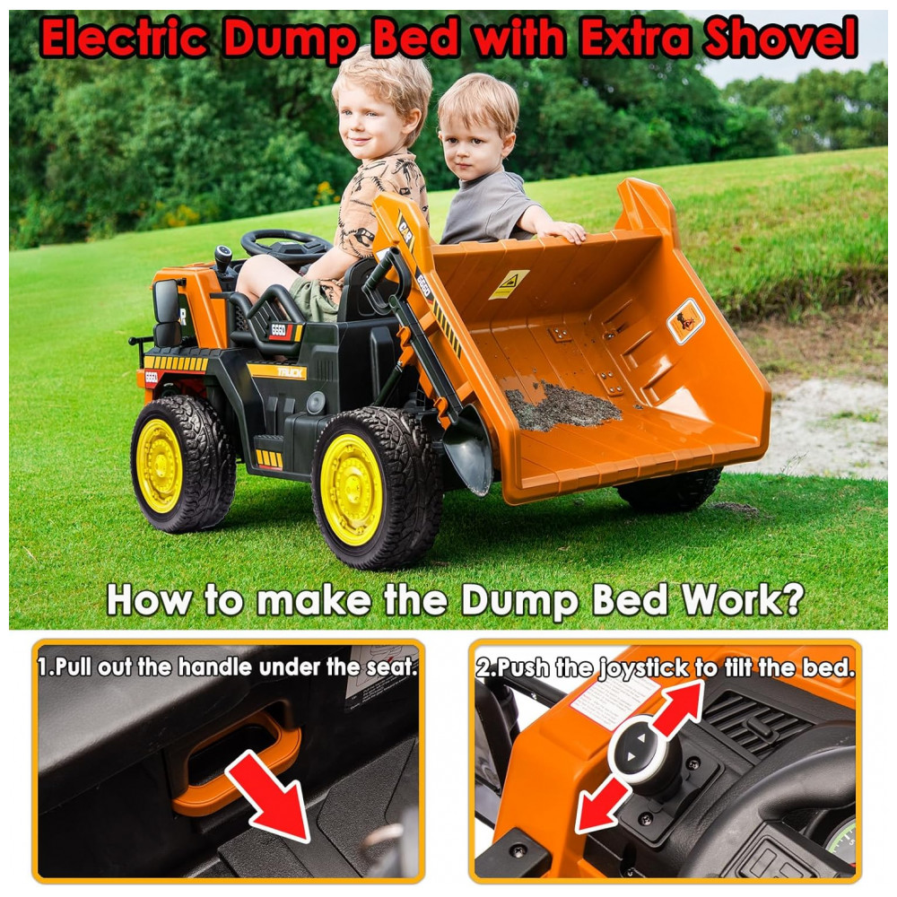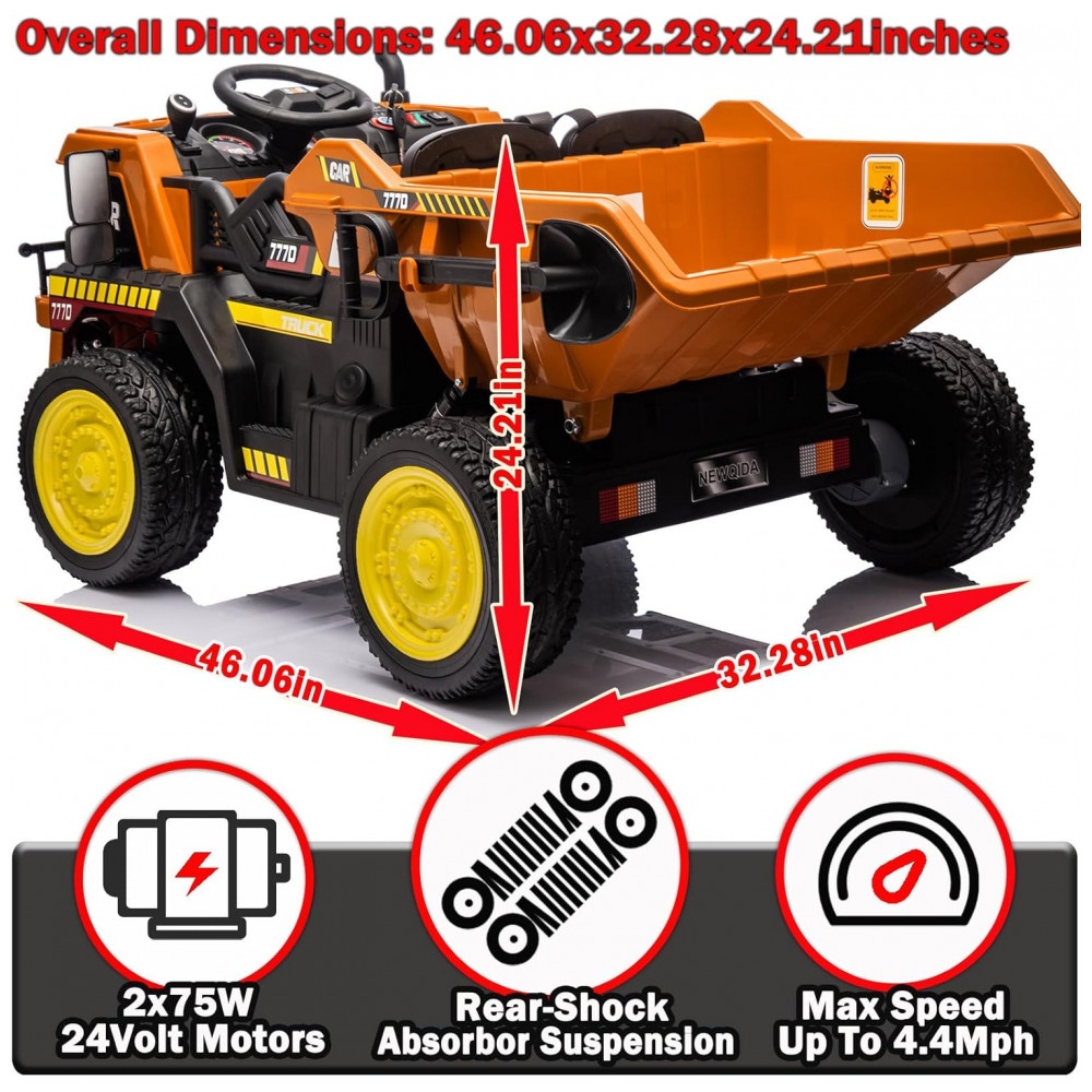 Caminhão Basculante Infantil Elétrico NEWQIDA Laranja 24V 2 Motores Pá Remota Caçamba Elétrica Bluetooth LED Bancos 19″