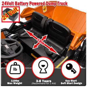 Caminhão Basculante Infantil Elétrico NEWQIDA Laranja 24V 2 Motores Pá Remota Caçamba Elétrica Bluetooth LED Bancos 19″