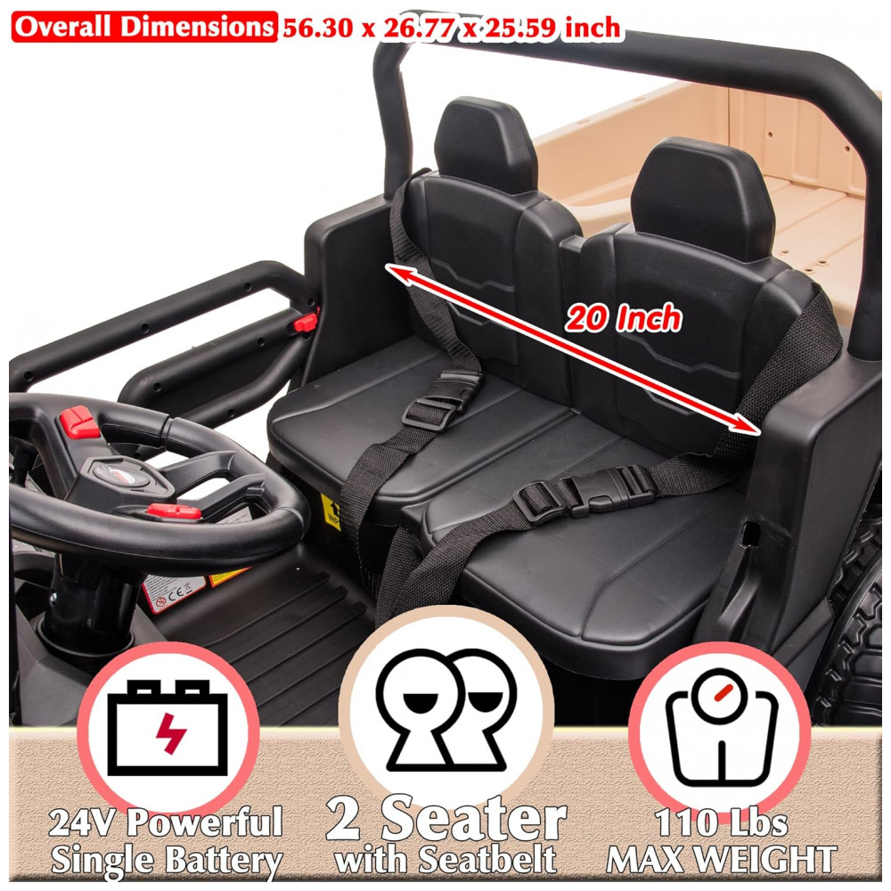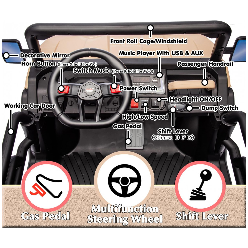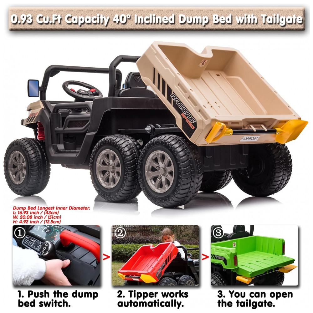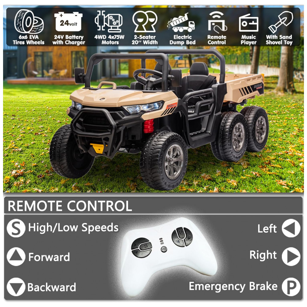 Caminhão Basculante Infantil Elétrico Sopbost Bege 24V 2 Lugares 4 Motores 75W Caçamba Automática 4WD Pneus EVA Controle Bluetooth
