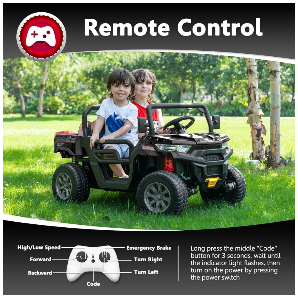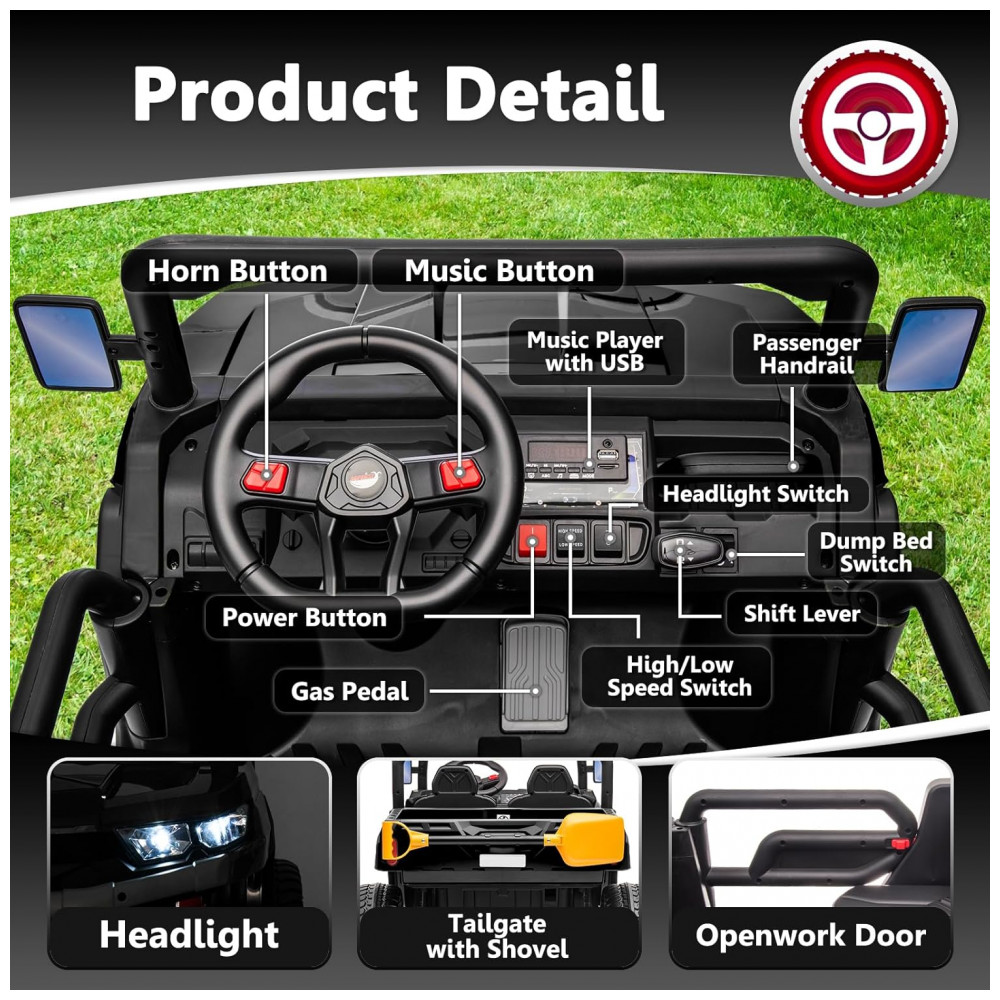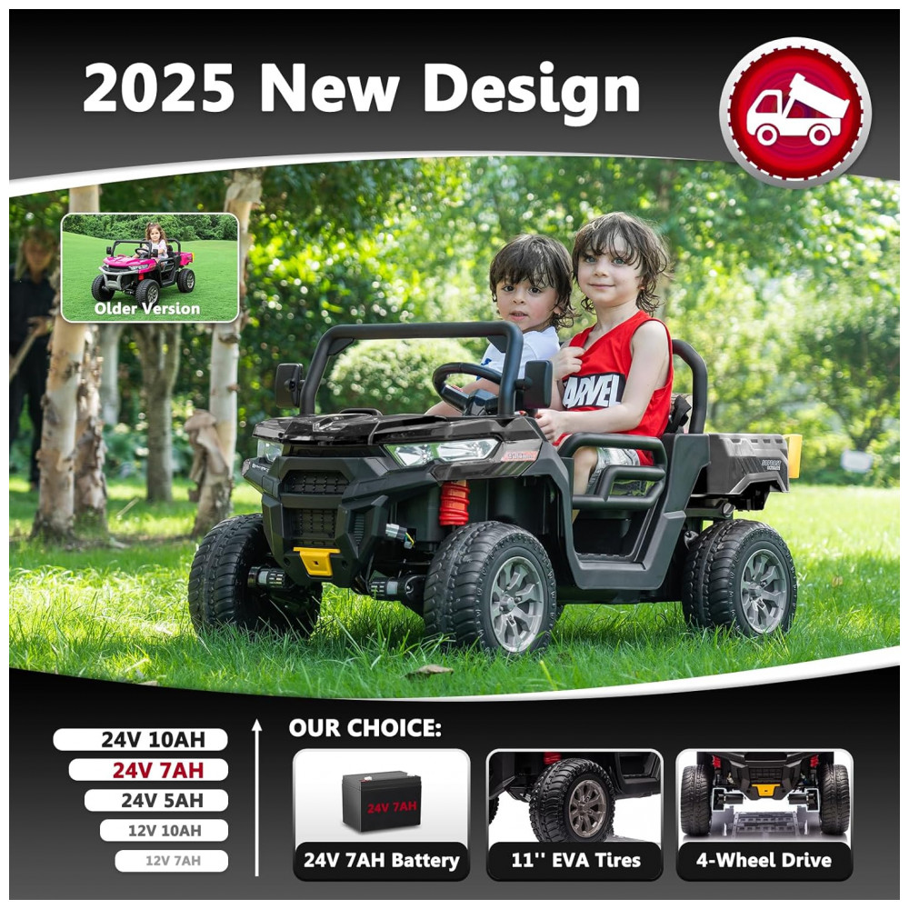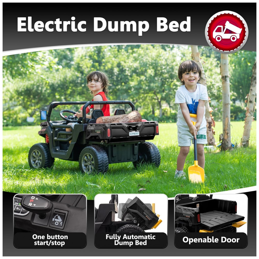 Caminhão Basculante Infantil Elétrico Sopbost Preto 24V 2 Lugares 4 Motores 75W Caçamba Automática 4WD Pneus EVA Controle Bluetooth