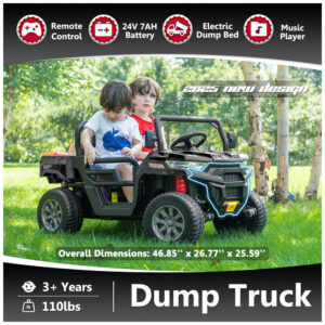 Caminhão Basculante Infantil Elétrico Sopbost Preto 24V 2 Lugares 4 Motores 75W Caçamba Automática 4WD Pneus EVA Controle Bluetooth