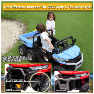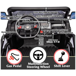 O caminhão basculante elétrico Sopbost oferece diversão, aventura e praticidade para crianças a partir de 3 anos, com capacidade para dois ocupantes, assento de 20” duplo, cada um com cinto de segurança. Conta com caçamba motorizada (abertura e fechamento por botão), sistema 4×4 com quatro motores de 75W, bateria 24V 7Ah, seis pneus EVA para qualquer terreno e seis amortecedores para maior estabilidade. Inclui rádio e painel musical com Bluetooth, USB e entrada auxiliar, além de controle remoto parental com três velocidades. Acompanha pá plástica de brinde e detalhes realistas de cabine, alavanca de marchas e portas funcionais. Peso máximo suportado de 50 kg, indicado para gramado, terra, areia, pisos residenciais.