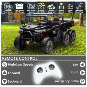 Caminhão Basculante Infantil Elétrico Sopbost Preto 24V 2 Lugares 4 Motores 75W Caçamba Automática 4WD Pneus EVA Controle Bluetooth