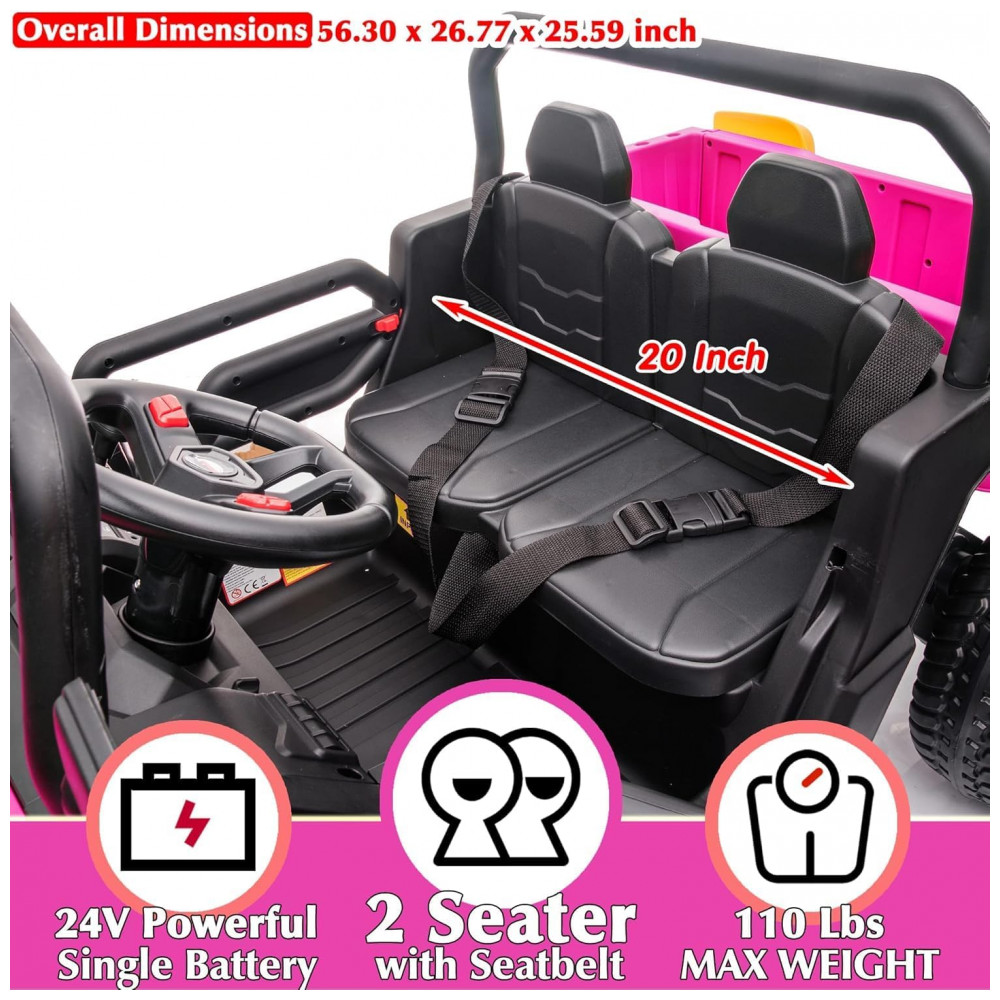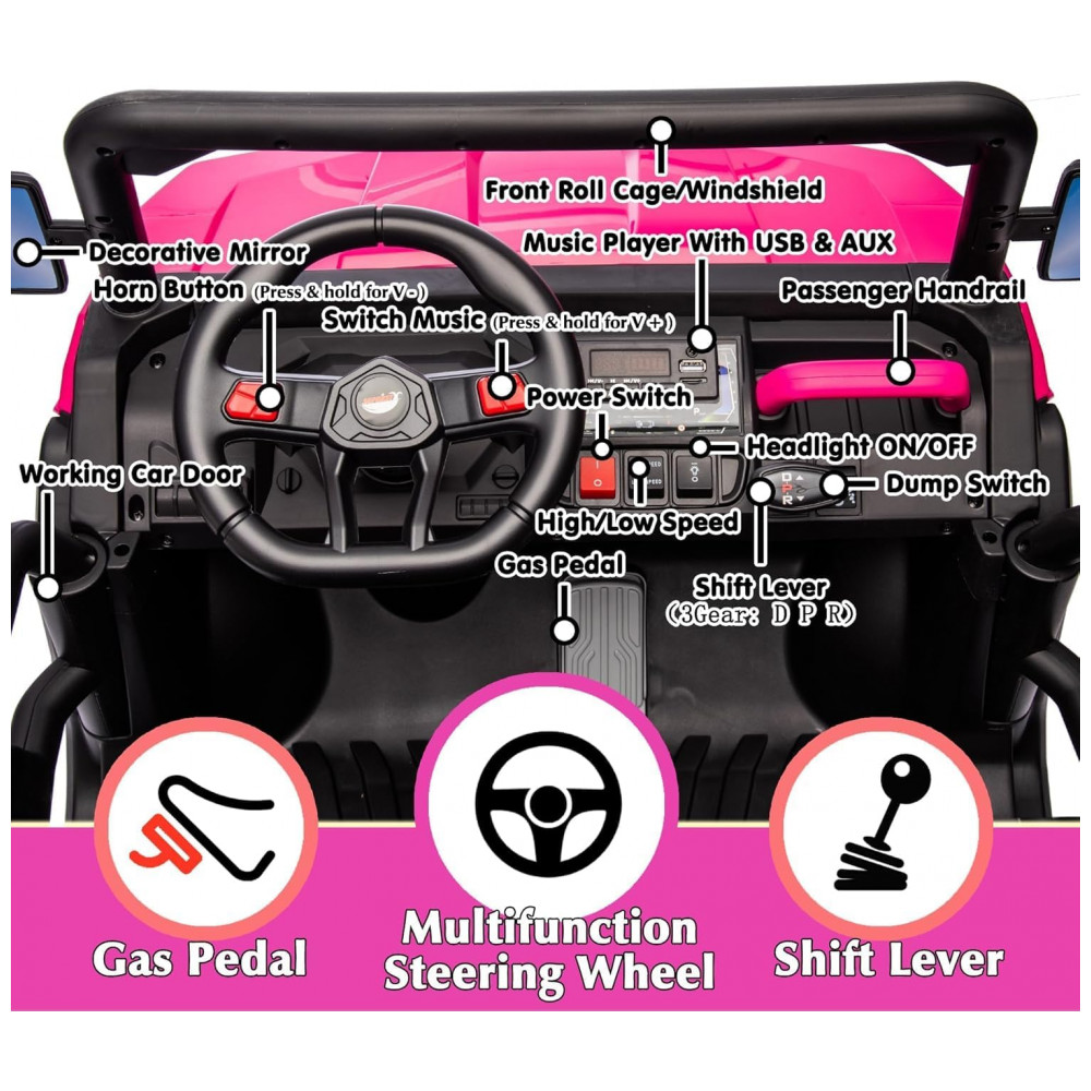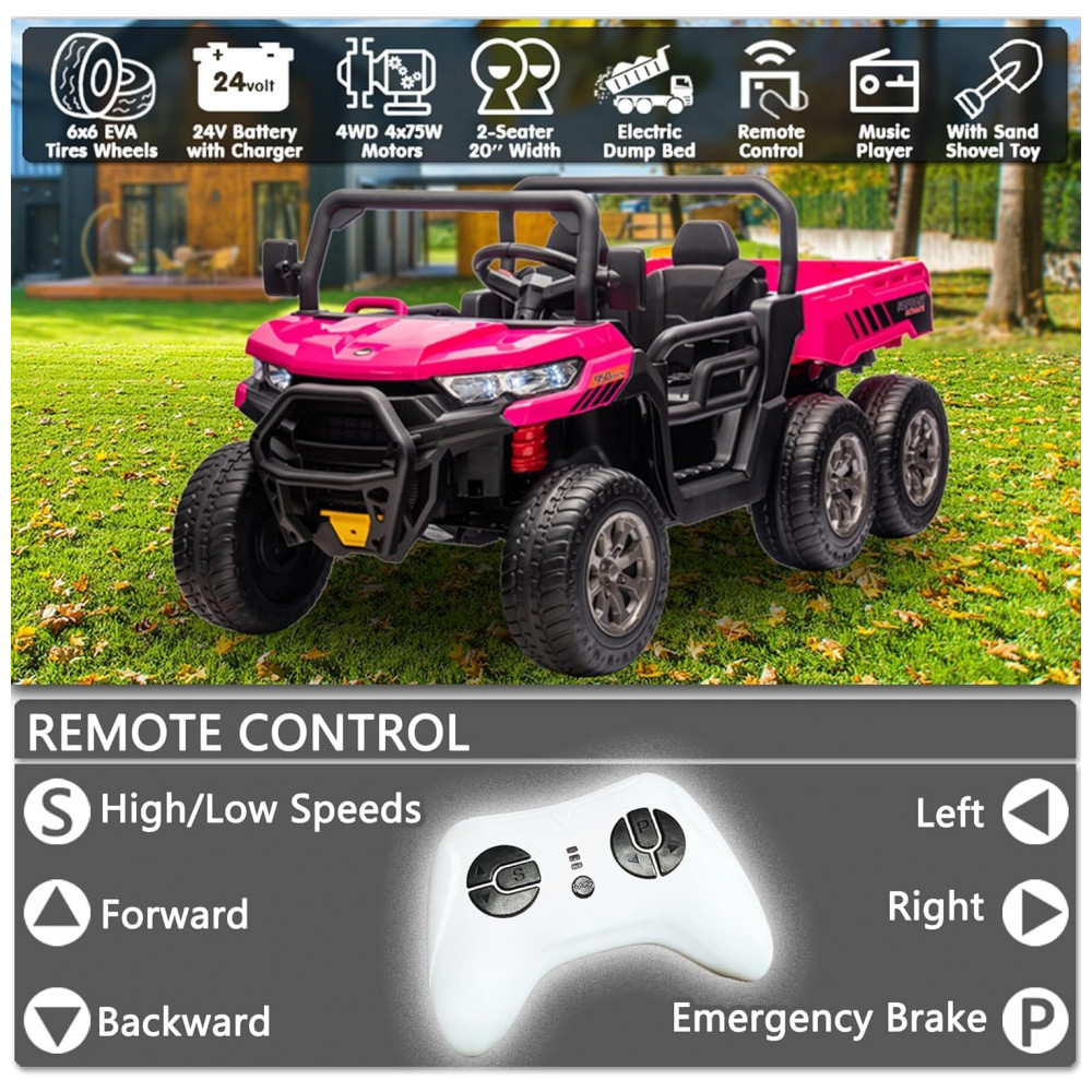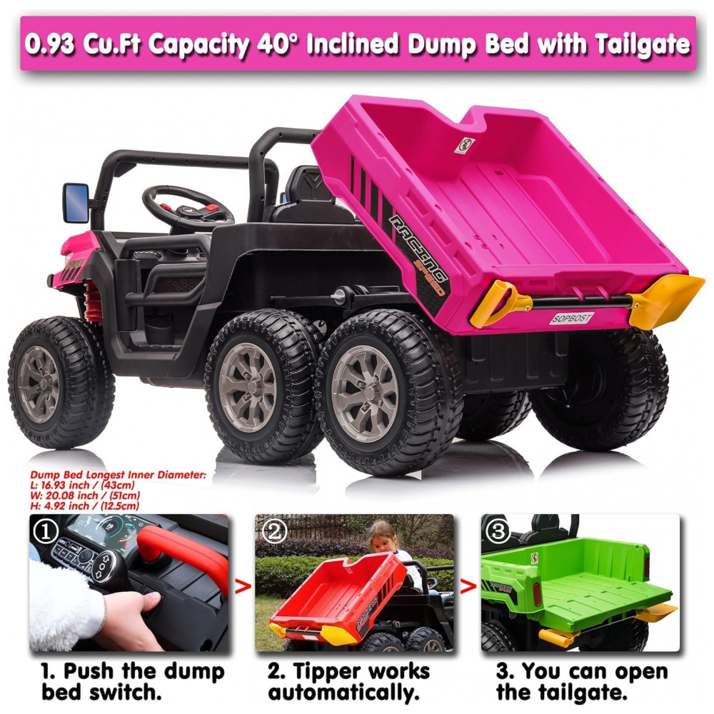 Caminhão Basculante Infantil Elétrico Sopbost Rosa 24V 2 Lugares 4 Motores 75W Caçamba Automática 4WD Pneus EVA Controle Bluetooth