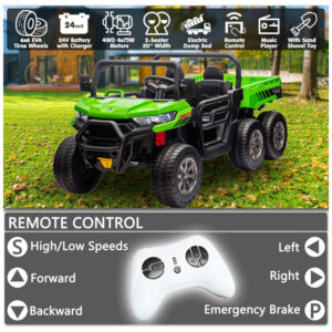 Caminhão Basculante Infantil Elétrico Sopbost Verde 24V 2 Lugares 4 Motores 75W Caçamba Automática 4WD Pneus EVA Controle Bluetooth