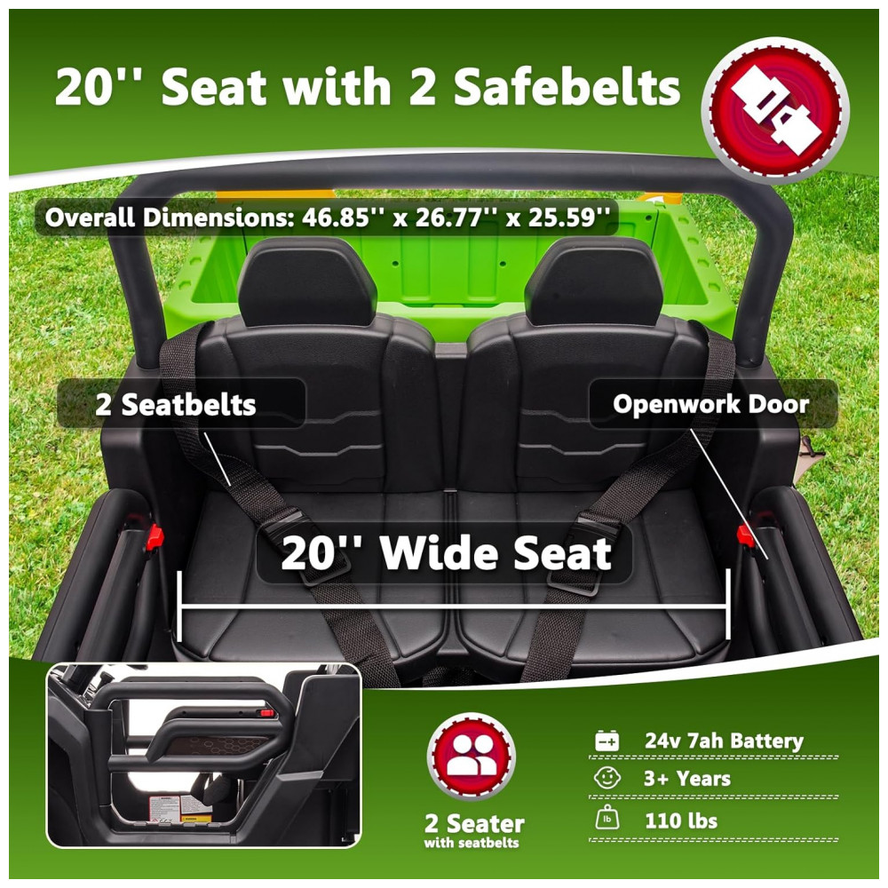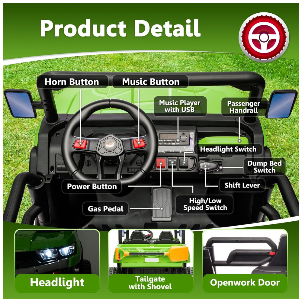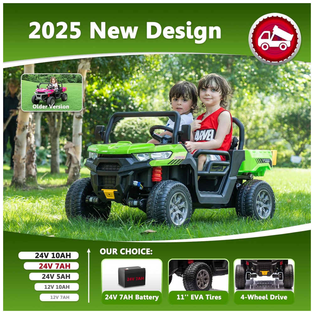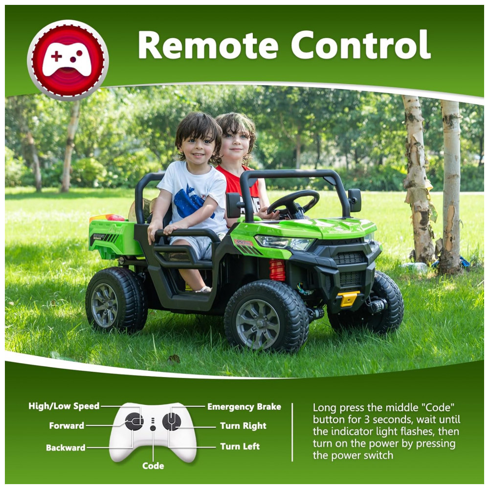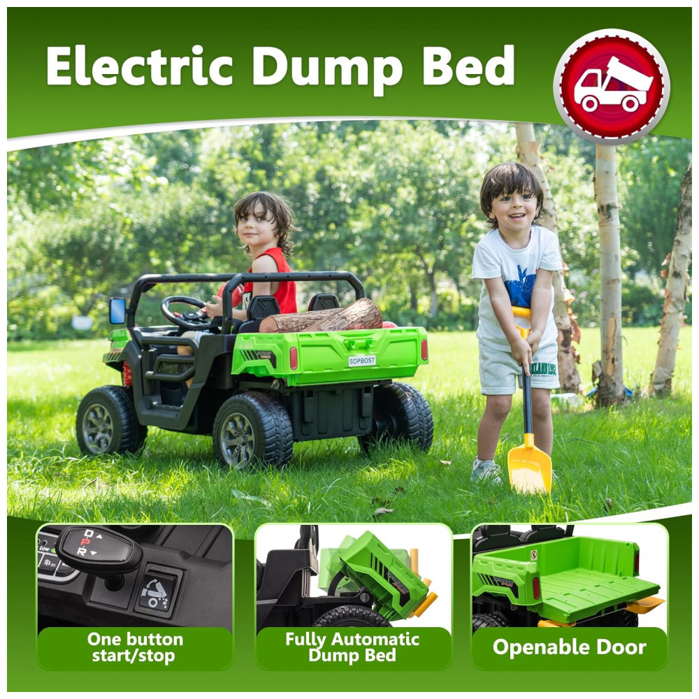Caminhão Basculante Infantil Elétrico Sopbost Verde 24V 2 Lugares 4 Motores 75W Caçamba Automática 4WD Pneus EVA Controle Bluetooth