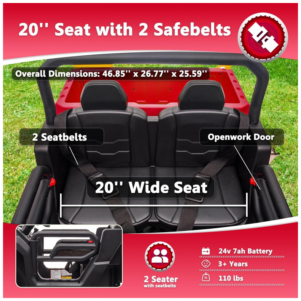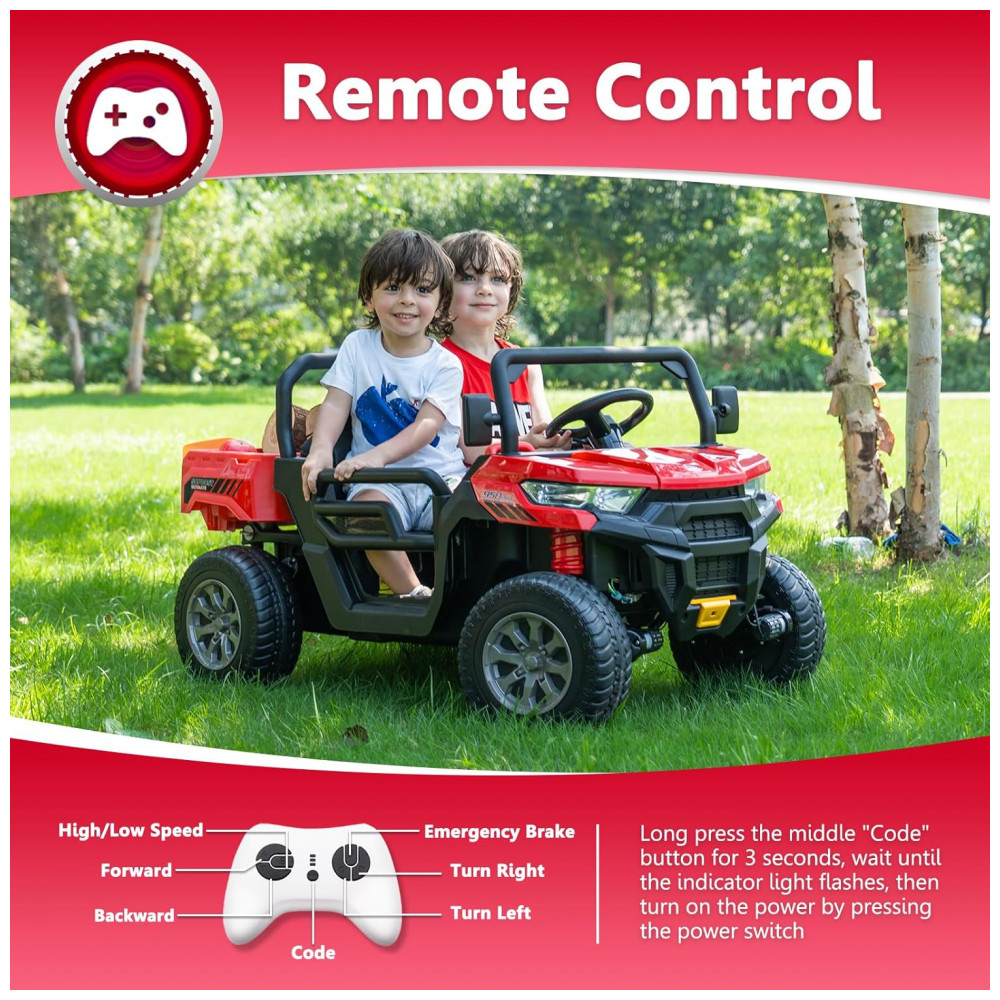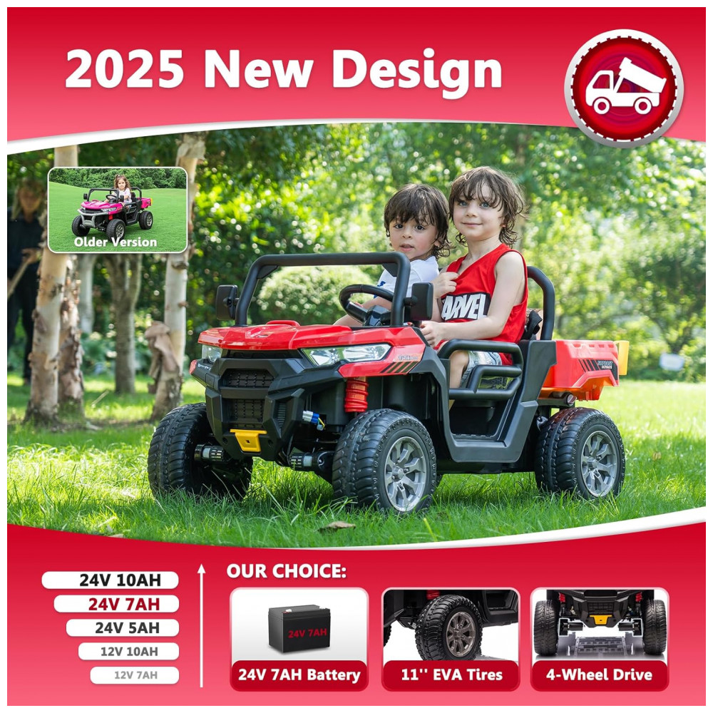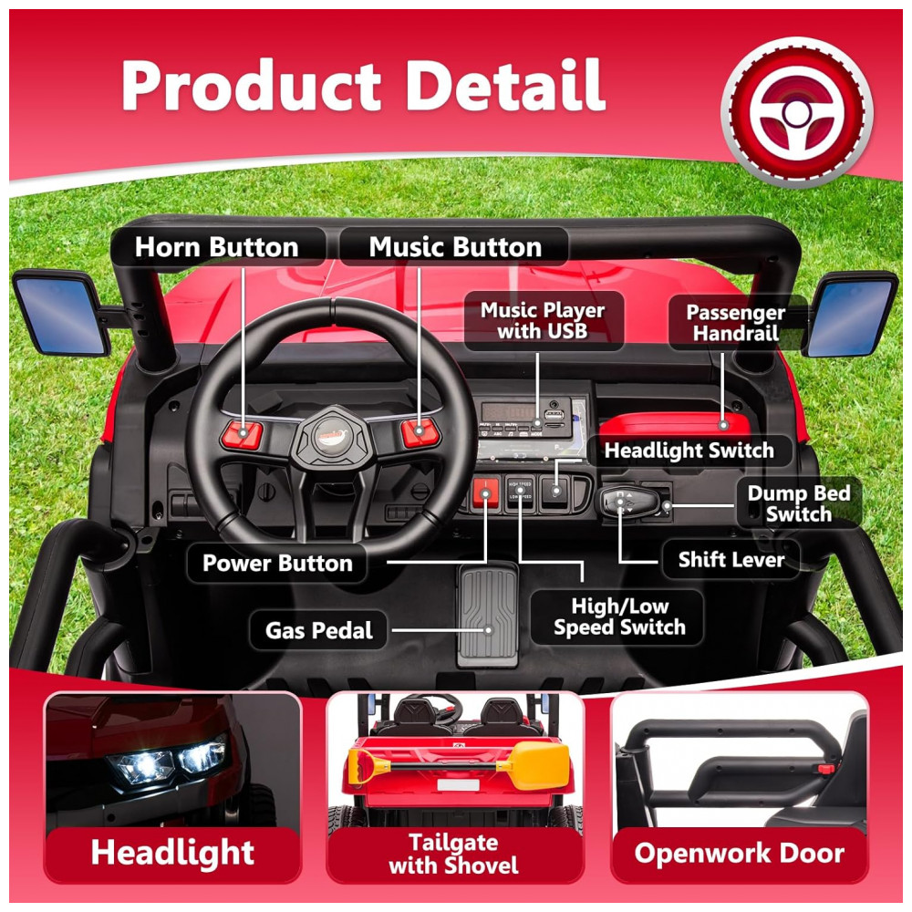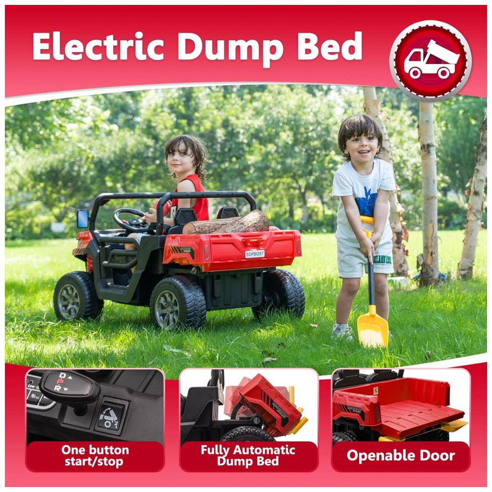 Caminhão Basculante Infantil Elétrico Sopbost Vermelho 24V 2 Lugares 4 Motores 75W Caçamba Automática 4WD Pneus EVA Controle Bluetooth
