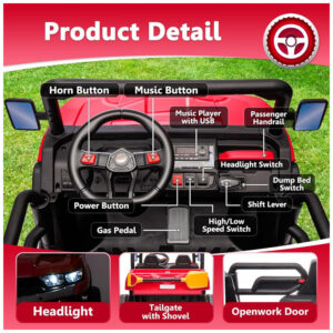 Caminhão Basculante Infantil Elétrico Sopbost Vermelho 24V 2 Lugares 4 Motores 75W Caçamba Automática 4WD Pneus EVA Controle Bluetooth