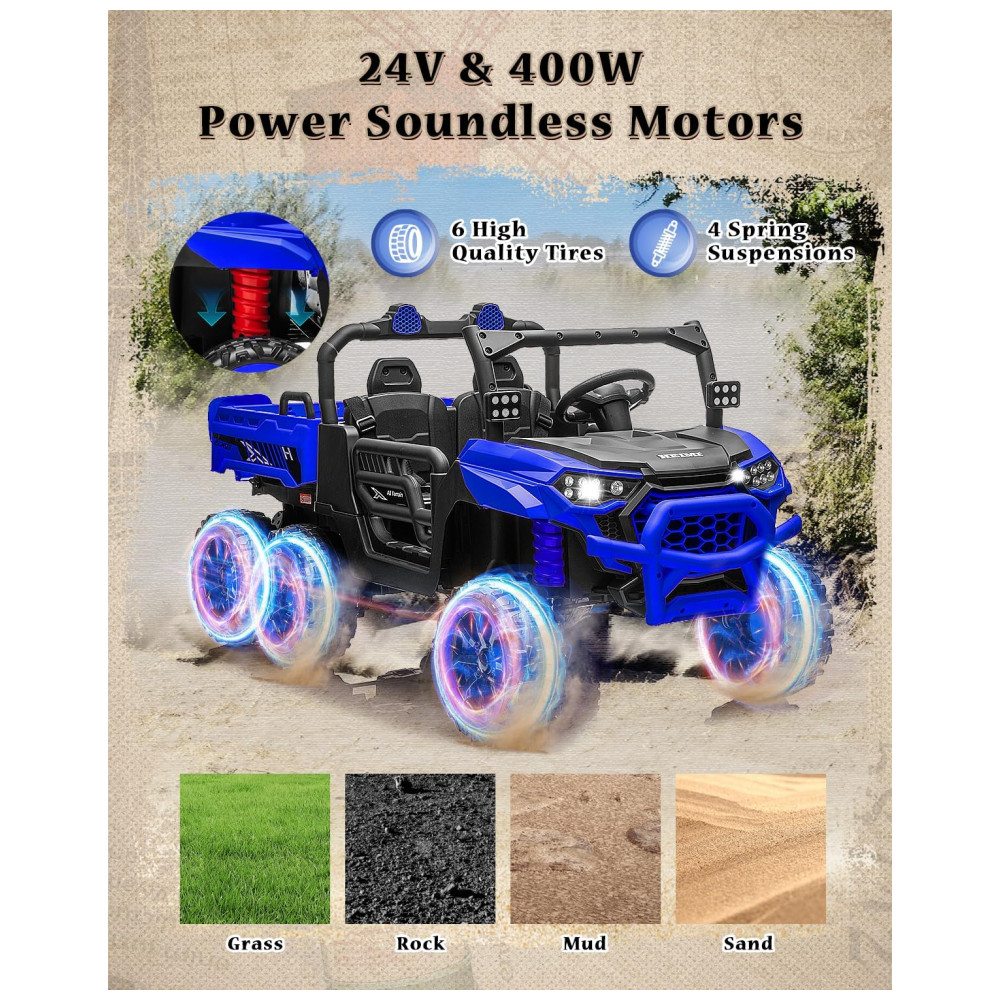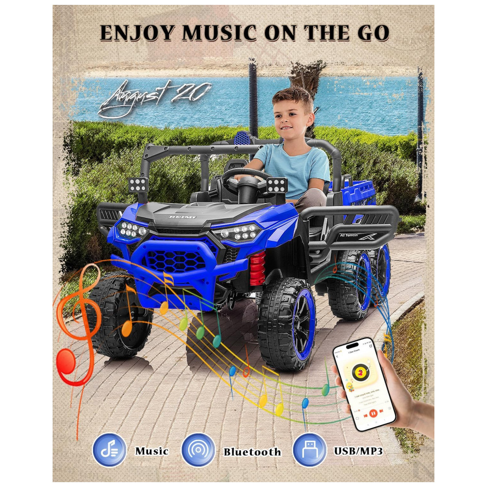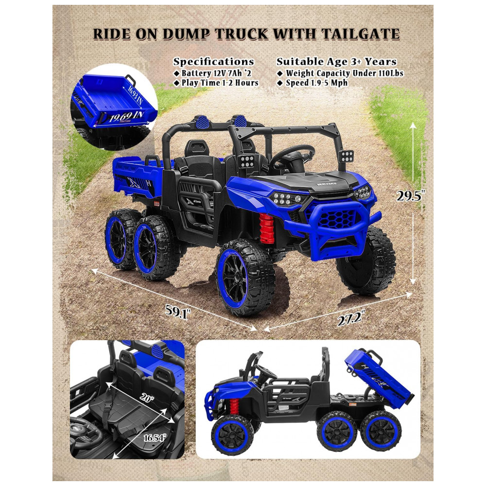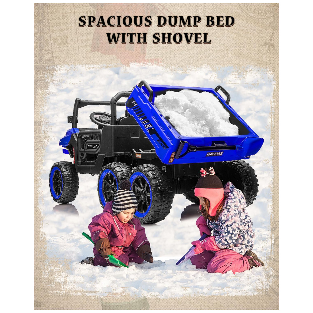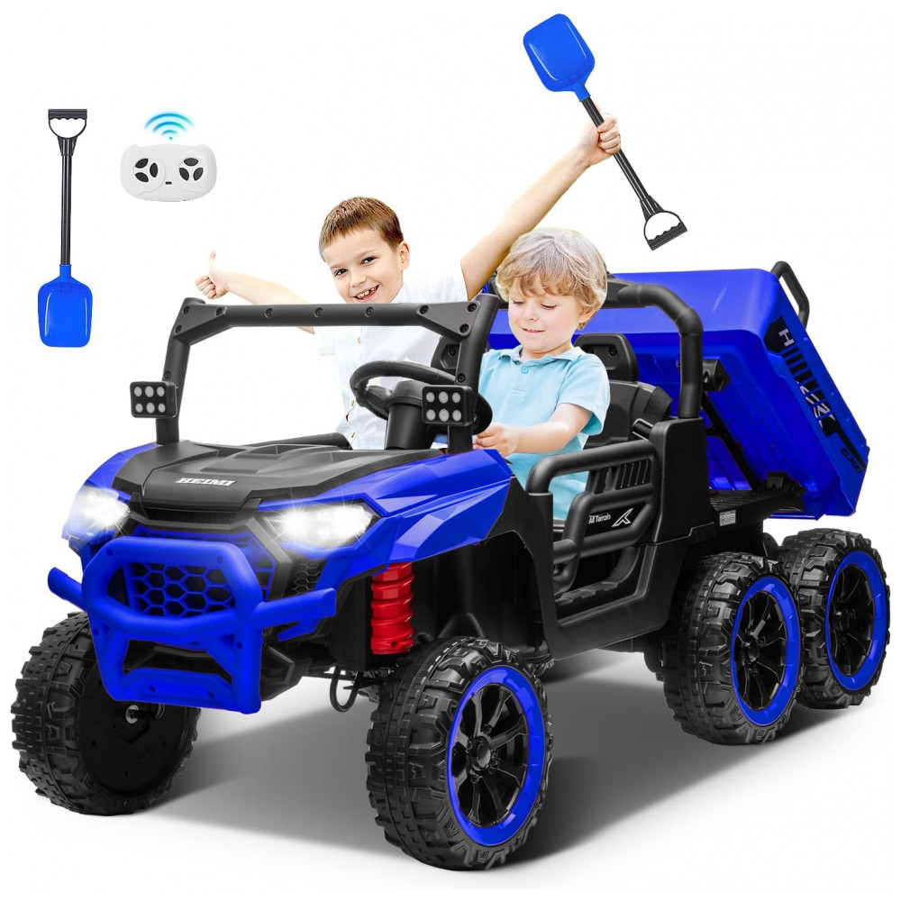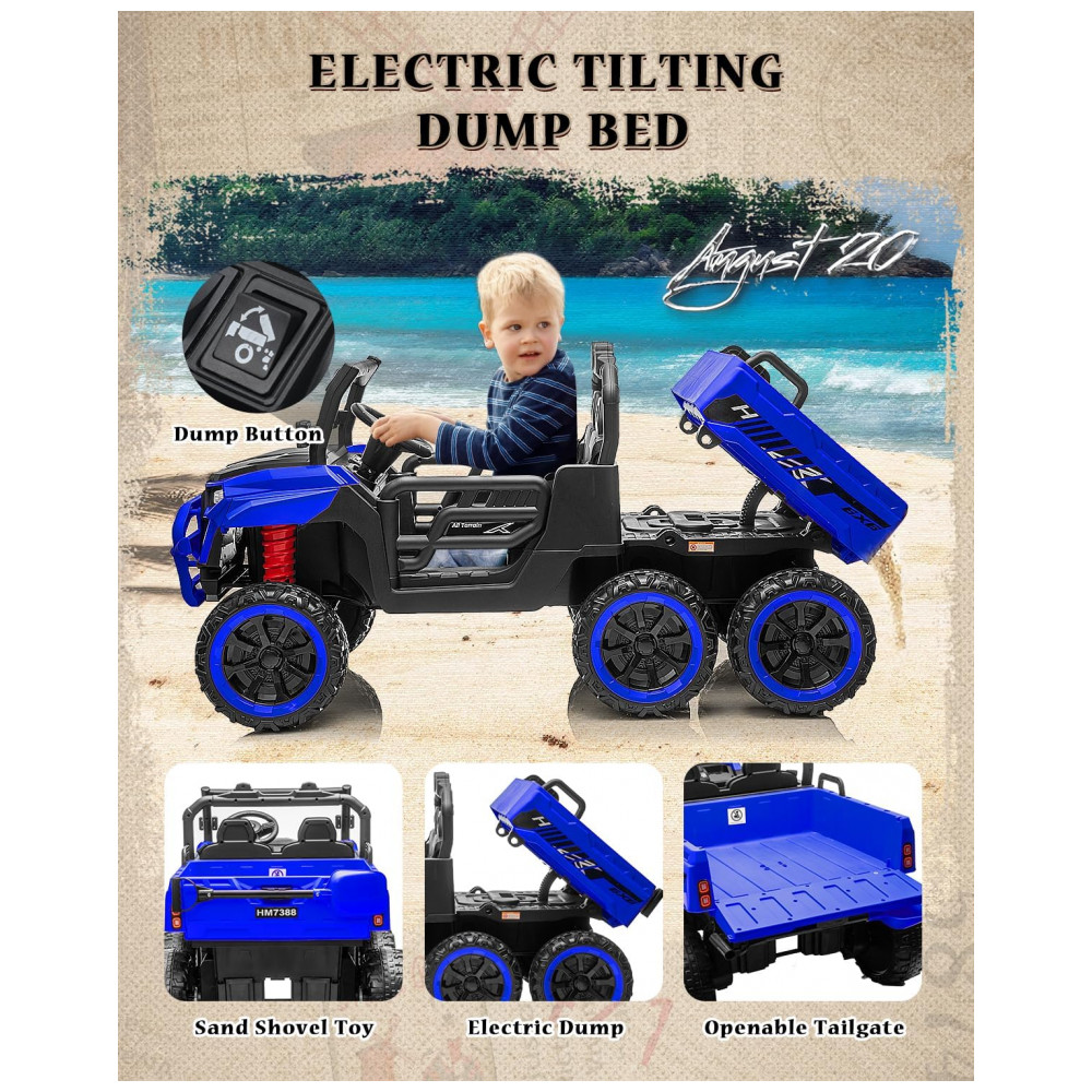 Caminhão Basculante Infantil Letsgoride Azul 24V 2 Lugares 4 Motores 100W Caçamba Automática 4WD Bluetooth Música LED 6 Rodas
