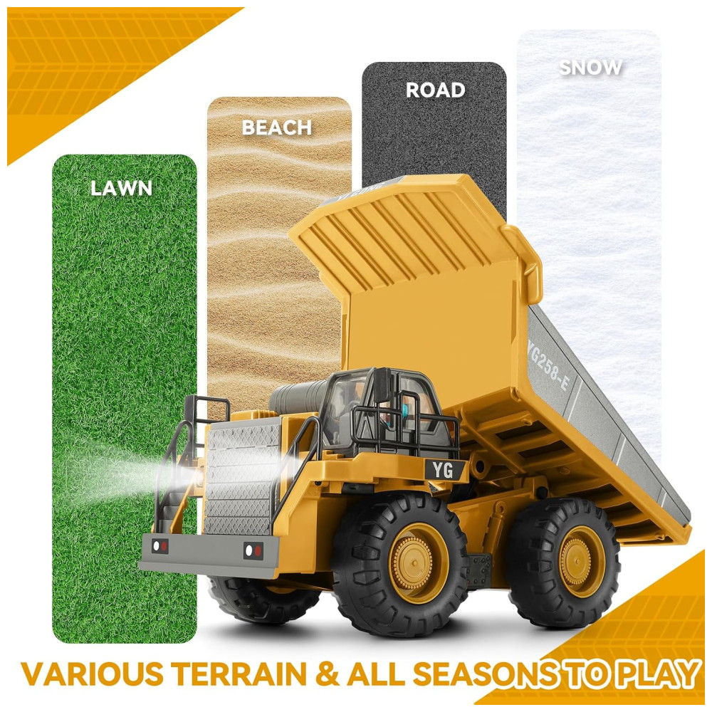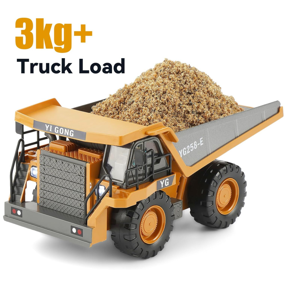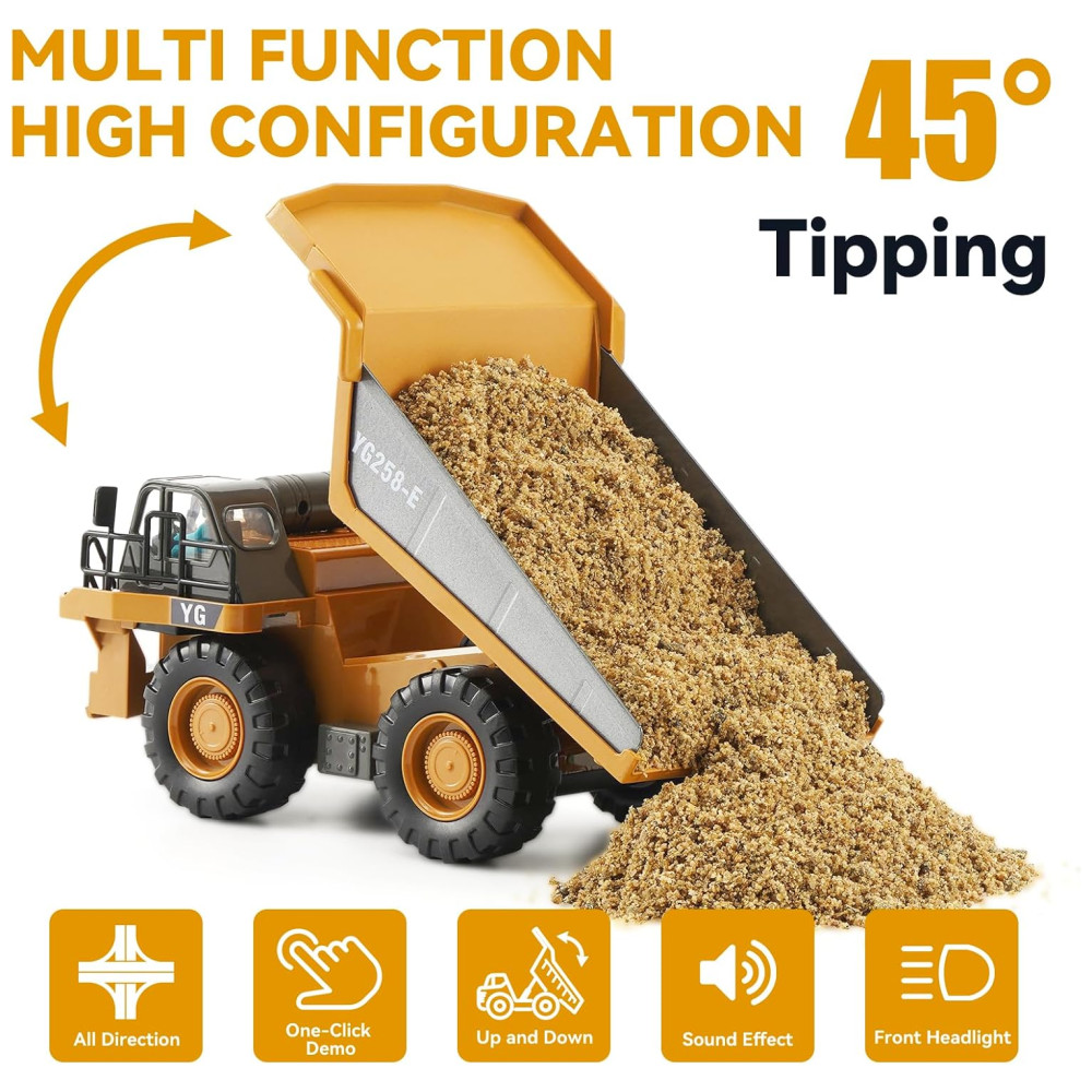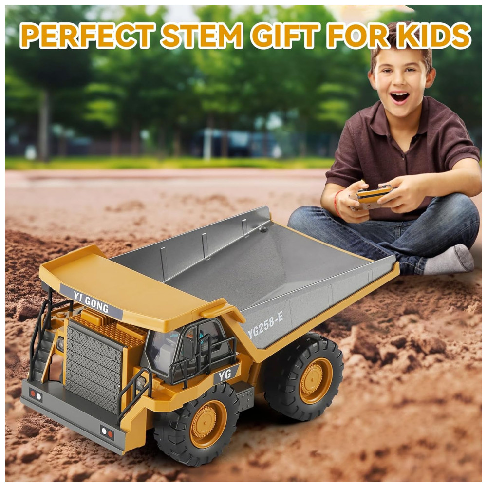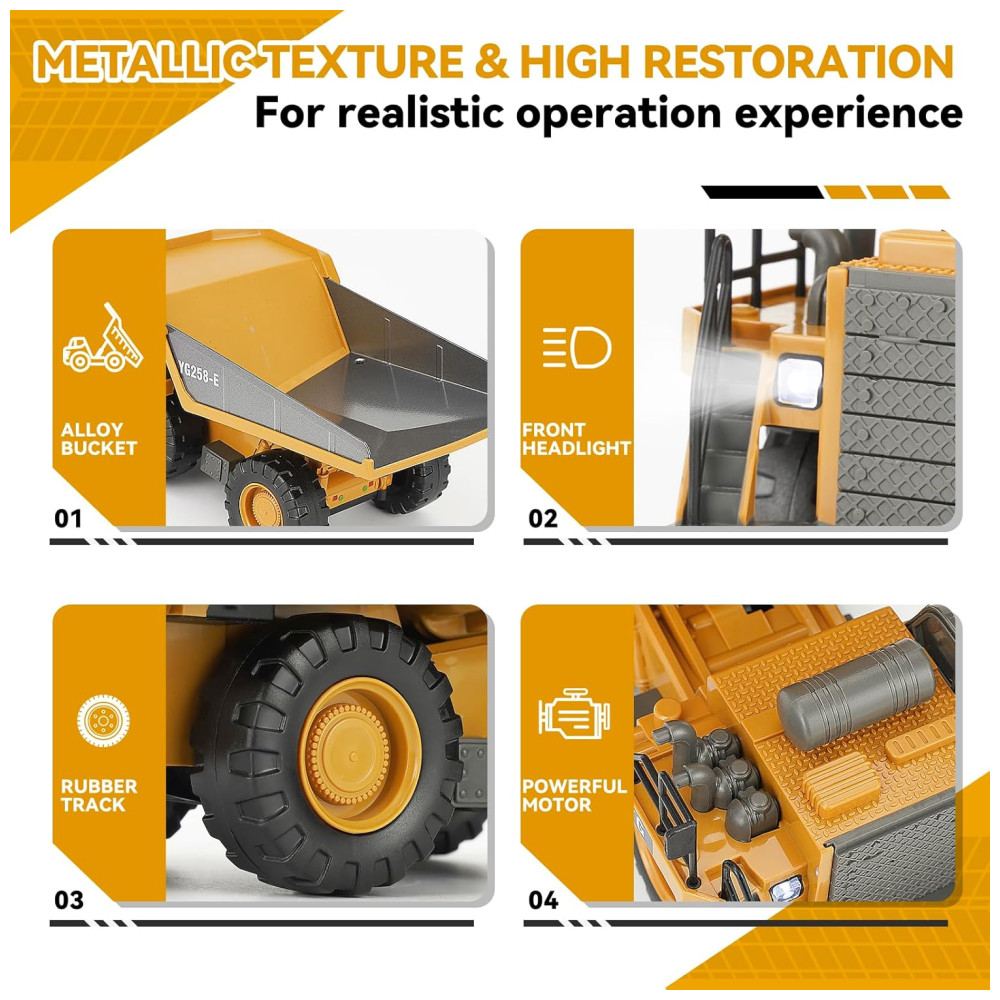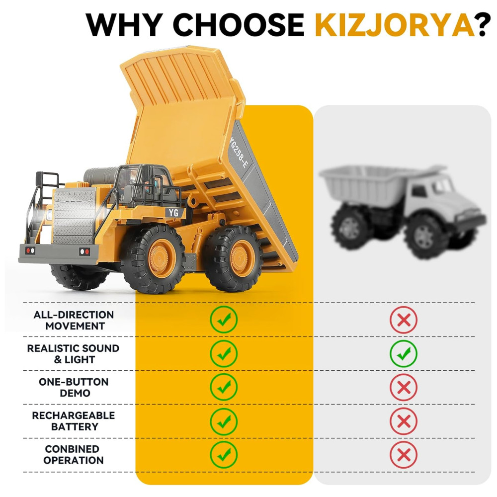 Caminhão Basculante RC 9 Canais com Luzes e Sons Metálicos Bateria Recarregável – Brinquedo de Construção para CriançasKIZJORYA
