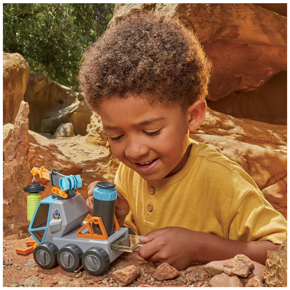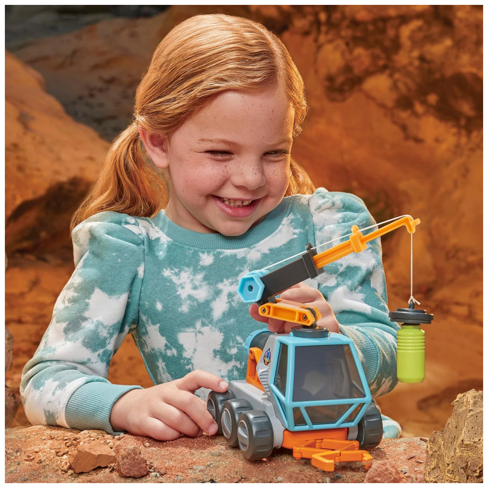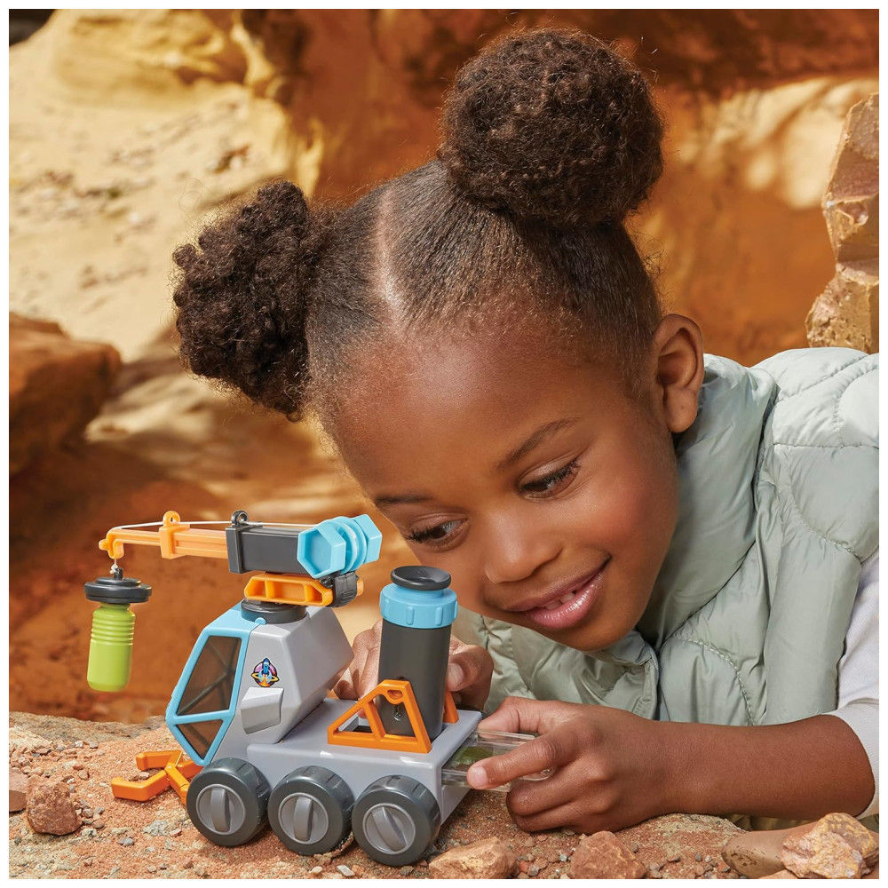Os brinquedos das Grandes Aventuras combinam brincadeira, diversão e aprendizado com ferramentas reais relacionadas a STEM. Este Space Rover inclui três ferramentas microscópio, garra extensível e guindaste magnético