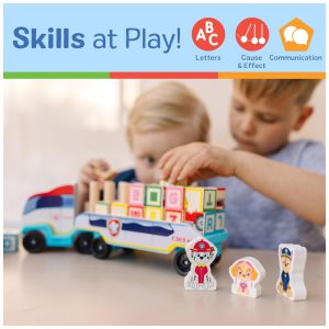 Caminhão de Bloco ABC de Madeira Tema Patrulha Canina com 33 Peças para Crianças Acima de 3 Anos Melissa & Doug