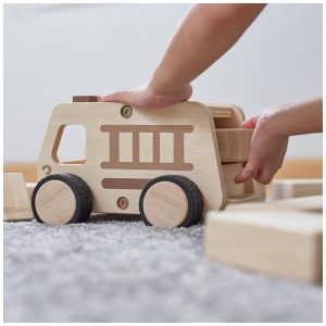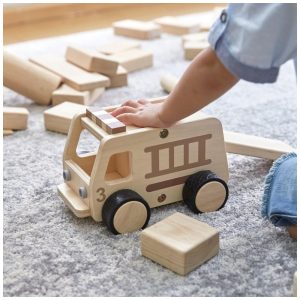 Caminhão de Bombeiros de Madeira Guidecraft Natural com Rodas Plásticas Antiderrapantes G6723